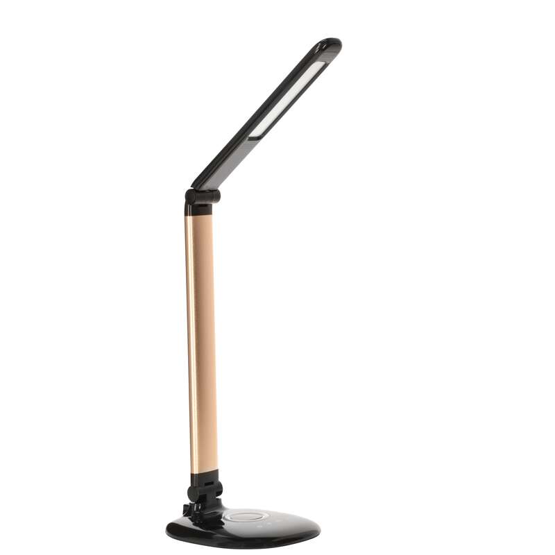 Lampka biurkowa 9W 520lm/280lm, klasa modułu E, 3000/4000/6000K, 3-poziomowa regulacja jasności, wyłącznik dotykowy, brak efektu olśnienia, funkcja Night Lihgt, kolor czarno-złoty, materiał: ABS, przewód zasilający 1,5m