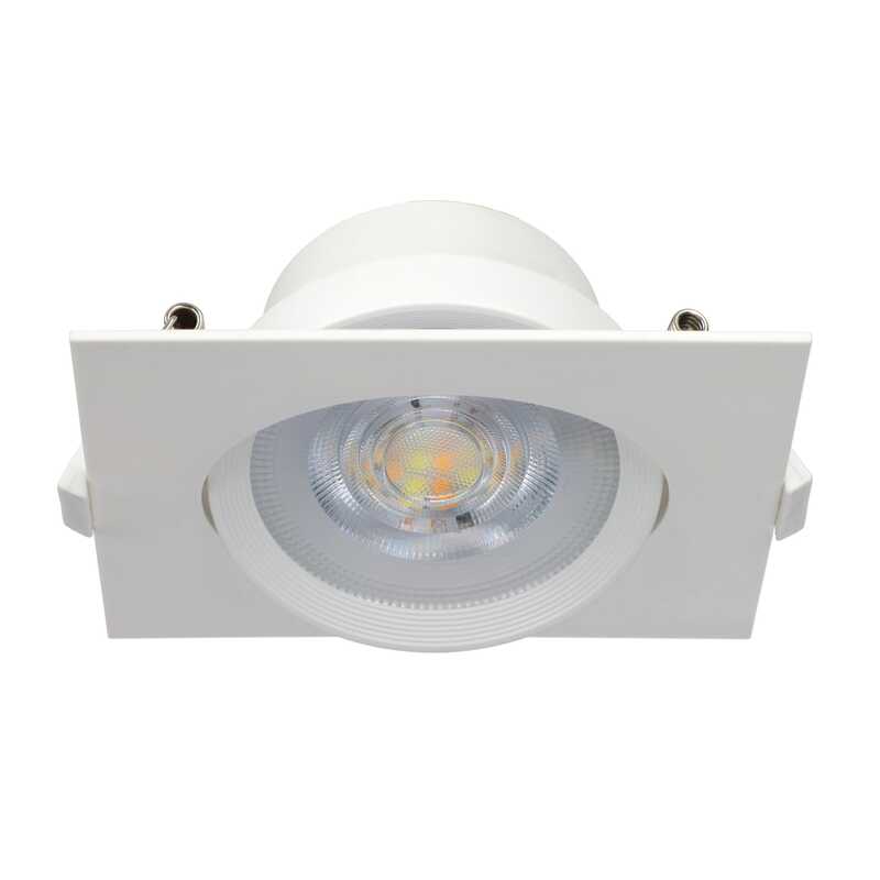 Downlight LED kwadratowy 5W 475lm/375lm dla 90°, 3000/4500/6500K, kąt świecenia 50°, 85x85x38mm, montaż podtynkowy, IP20 klasa energetyczna F, kolor biały
