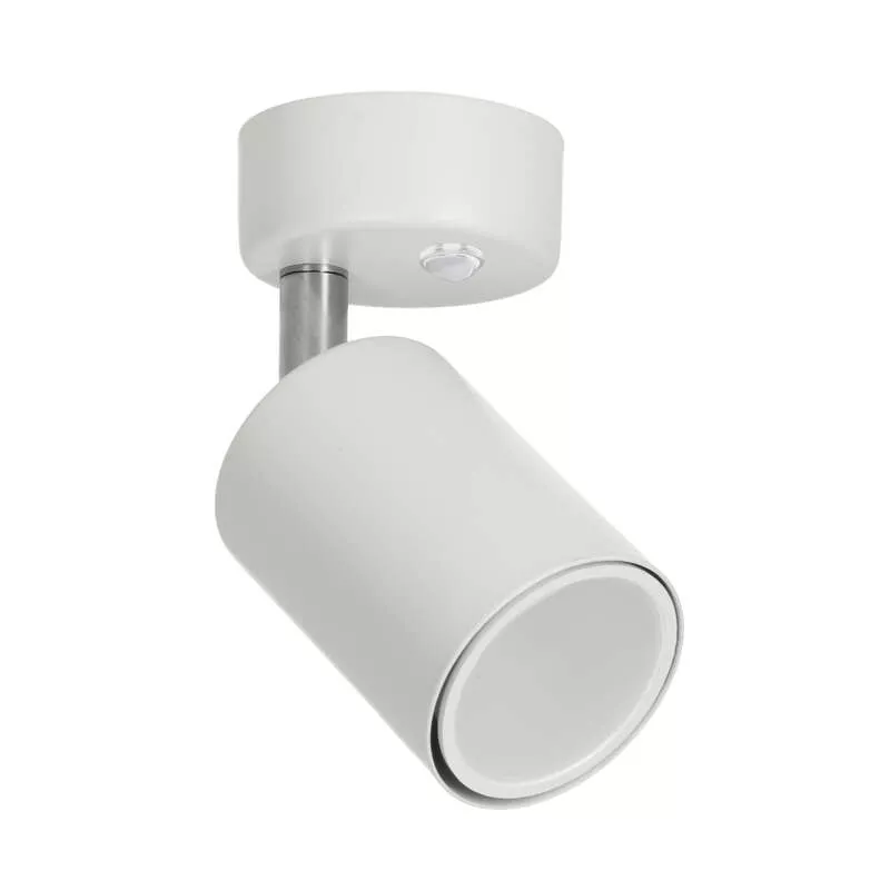 Reflektor 1 x GU10 z wyłącznikiem, max moc źródła 10W, kolor biały, wymiary (dł./szer./wys./śr. klosza): 100x80x90x55mm, materiał: stal, pełna regulacja kątowa, gwarancja 2 lata