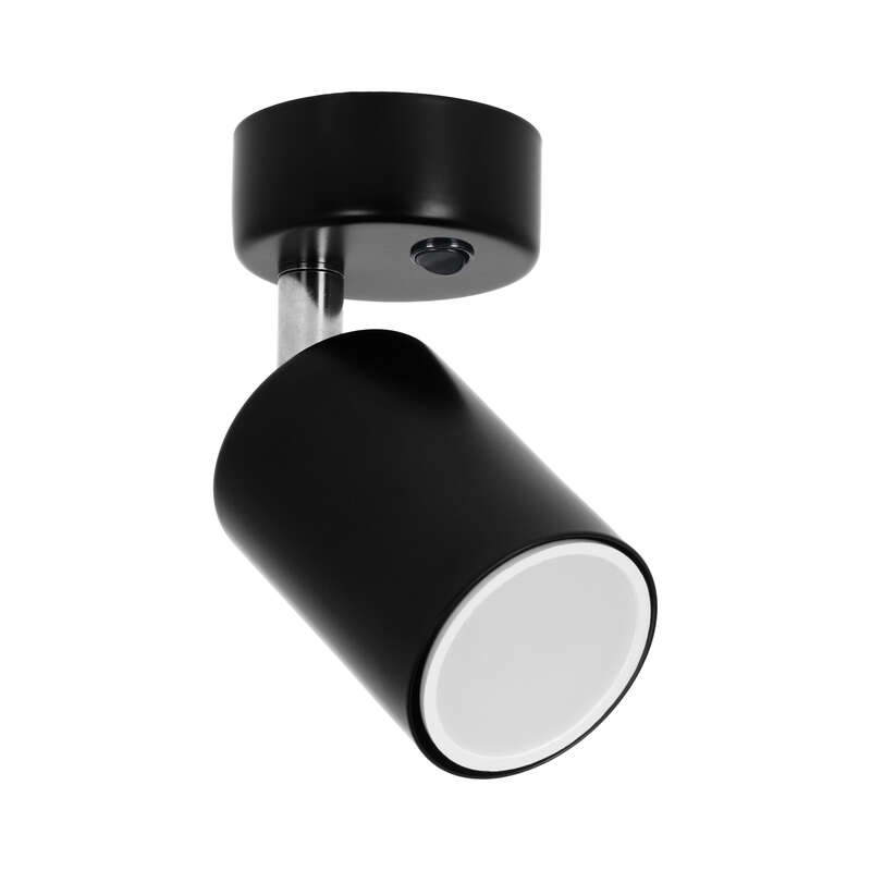 Reflektor 1 x GU10 z wyłącznikiem, max moc źródła 10W, kolor czarny, wymiary (dł./szer./wys./śr. klosza): 100x80x90x55mm, materiał: stal, pełna regulacja kątowa, gwarancja 2 lata