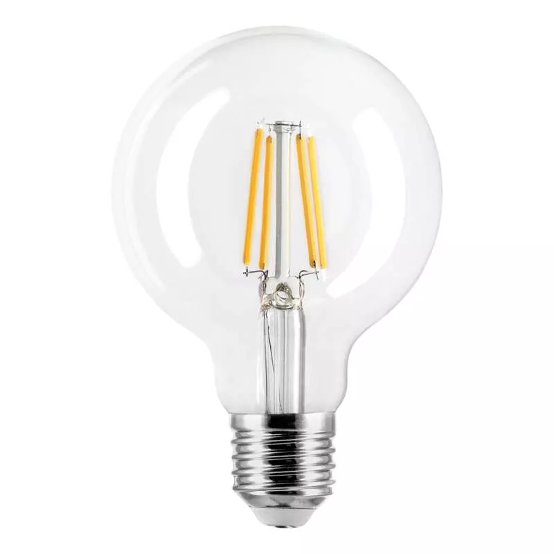 Źródło światła LED filament E27 G80, 7W, 800lm, 3000K, kąt świecenia 320°, D80x118mm, klosz transparentny, klasa enertetyczna E, gwarancja 2 lata