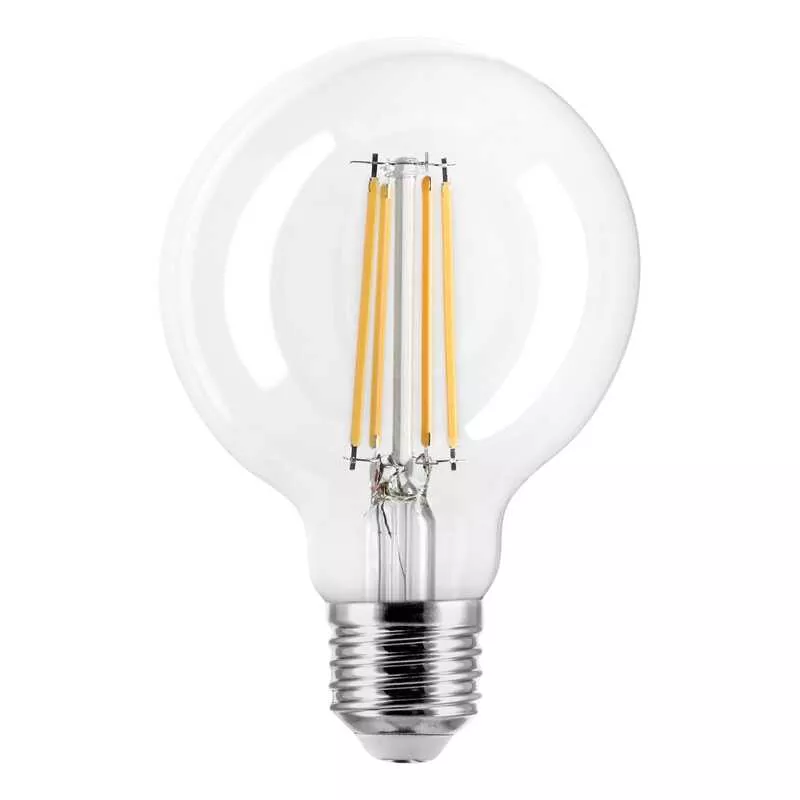 Źródło światła LED filament E27 G80, 8W, 1050lm, 3000K, kąt świecenia 320°, D80x118mm, klosz transparentny, klasa enertetyczna E, gwarancja 2 lata