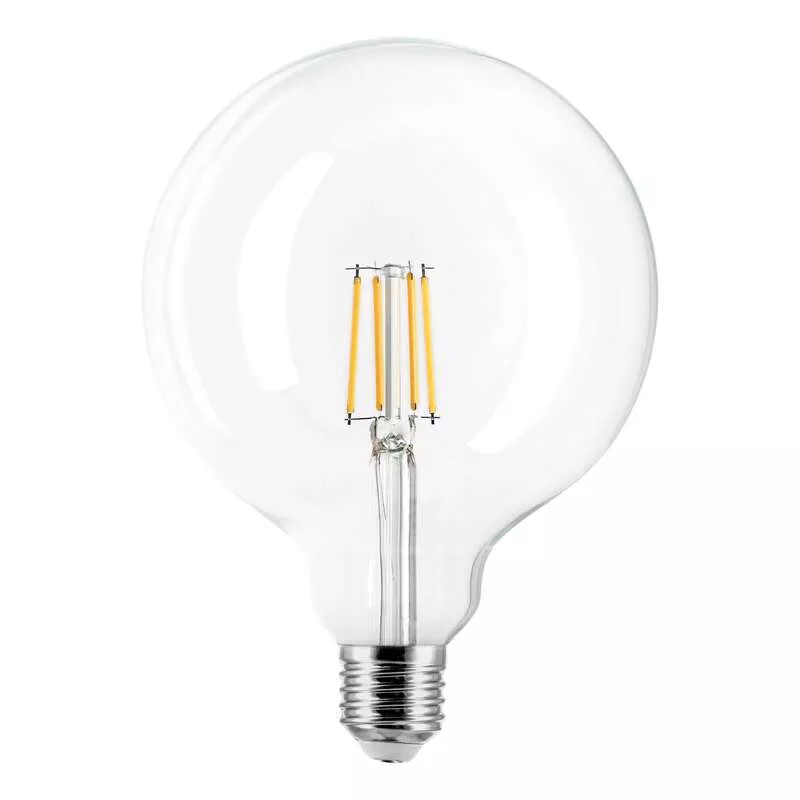 Źródło światła LED filament E27 G125, 7W, 800lm, 3000K, kąt świecenia 320°, D125x175mm, klosz transparentny, klasa enertetyczna E, gwarancja 2 lata