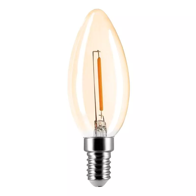 Źródło światła LED filament E14 C35, 1W, 50lm, 2000K, kąt świecenia 320°, D35x98mm, klosz bursztynowy, klasa energetyczna G, gwarancja 2 lata