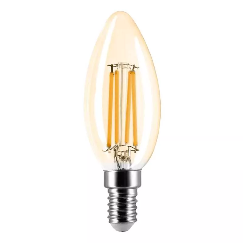 Źródło światła LED filament E14 C35, 4W, 280lm, 2000K, kąt świecenia 320°, D35x98mm, klosz bursztynowy, klasa energetyczna G, gwarancja 2 lata