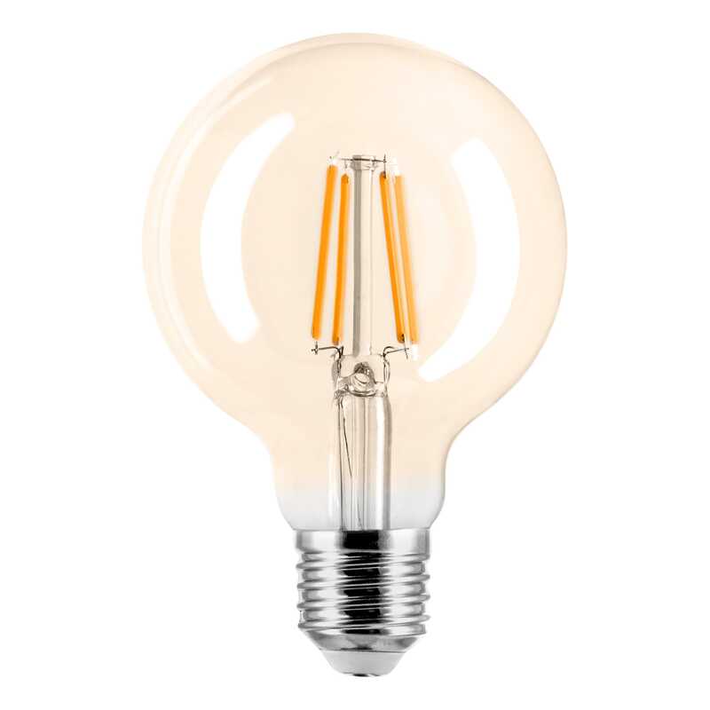 Źródło światła LED filament E27 G80, 4W, 360lm, 2000K, kąt świecenia 320°, D80x118mm, klosz bursztynowy, klasa enertetyczna F, gwarancja 2 lata