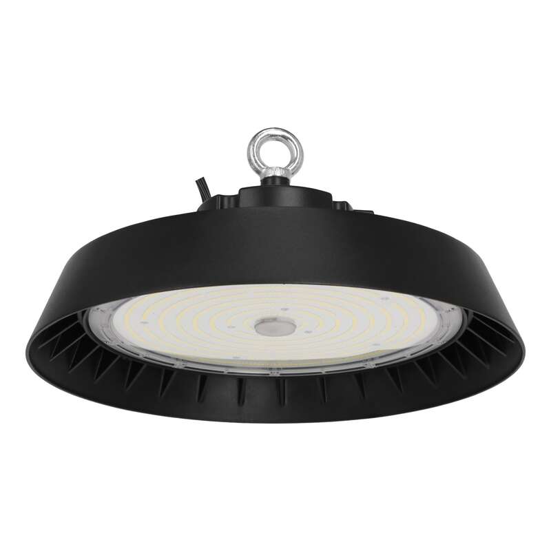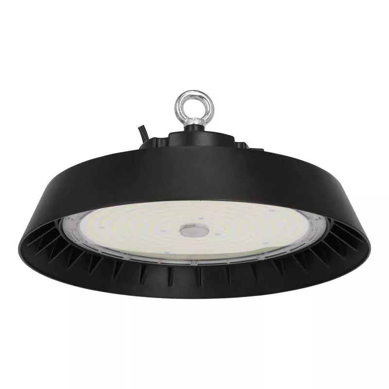 Oprawa High-Bay LED, 200/150/100W, strumień całkowity 40000/30000/20000lm, strumień użyteczny 33000/25000/17000lm (dla kąta 120°), skuteczność 200lm/W, regulacja jasności 1-10V, 4000K, kąt świecenia 120°, klasa energetyczna B, materiał: aluminium/PC, wymiary D350x185mm, IP65, IK09, gwarancja 5 lat