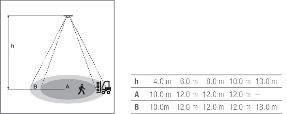 Czujnik ruchu ze stykiem przełączającym do wysokości 13 m, opcjonalnie z ADAPTEREM DALI HIGHBAY. Cechy produktu: Czujnik ruchu ze stykiem z przełącznikiem. 3 – 10 m: wykrywanie ruchu osób. 3 – 13 m: wykrywanie ruchu pojazdów (np. wózków widłowych). Regulowane opóźnienie wyłączenia: 30 s – 20 min. Maks. pobór mocy w trybie czuwania: 0,25 W. Zalety produktu: Oszczędność energii do 35 % (w porównaniu z przełączaniem ręcznym). Obszary zastosowań: Znakomita wysokość montażu. Przemysł. Hale produkcyjne. Wyposażenie / Akcesoria: Przeznaczone dla maks. 15 elektronicznych układów zasilających. Możliwa instalacja przy pomocy adaptera montażowego.
