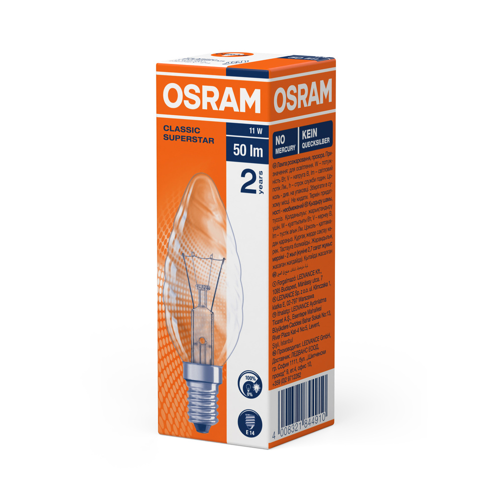 Żarówki świecowe. Cechy produktu: Nieutleniający się trzonek aluminiowy. Zalety produktu: Brylantowe światło (CL, wersja bezbarwna). Ograniczony efekt olśnienia i zmiękczone cienie (FR - wersja matowa). Obszary zastosowań: Zastosowania domowe. Sklepy, hotele i restauracje. Sale konferencyjne. Centra handlowe. Oprawy dla trzonków E27 i B22d (przykręcane lub zatrzaskowe). Porady dotyczące bezpieczeństwa: Nie dotykaj lampy, jeśli jest stłuczona.. Nie wolno używać, jeśli zewnętrzne źródło światła jest uszkodzone.. Lampa przeznaczona do stosowania wyłącznie w oprawie zamkniętej..