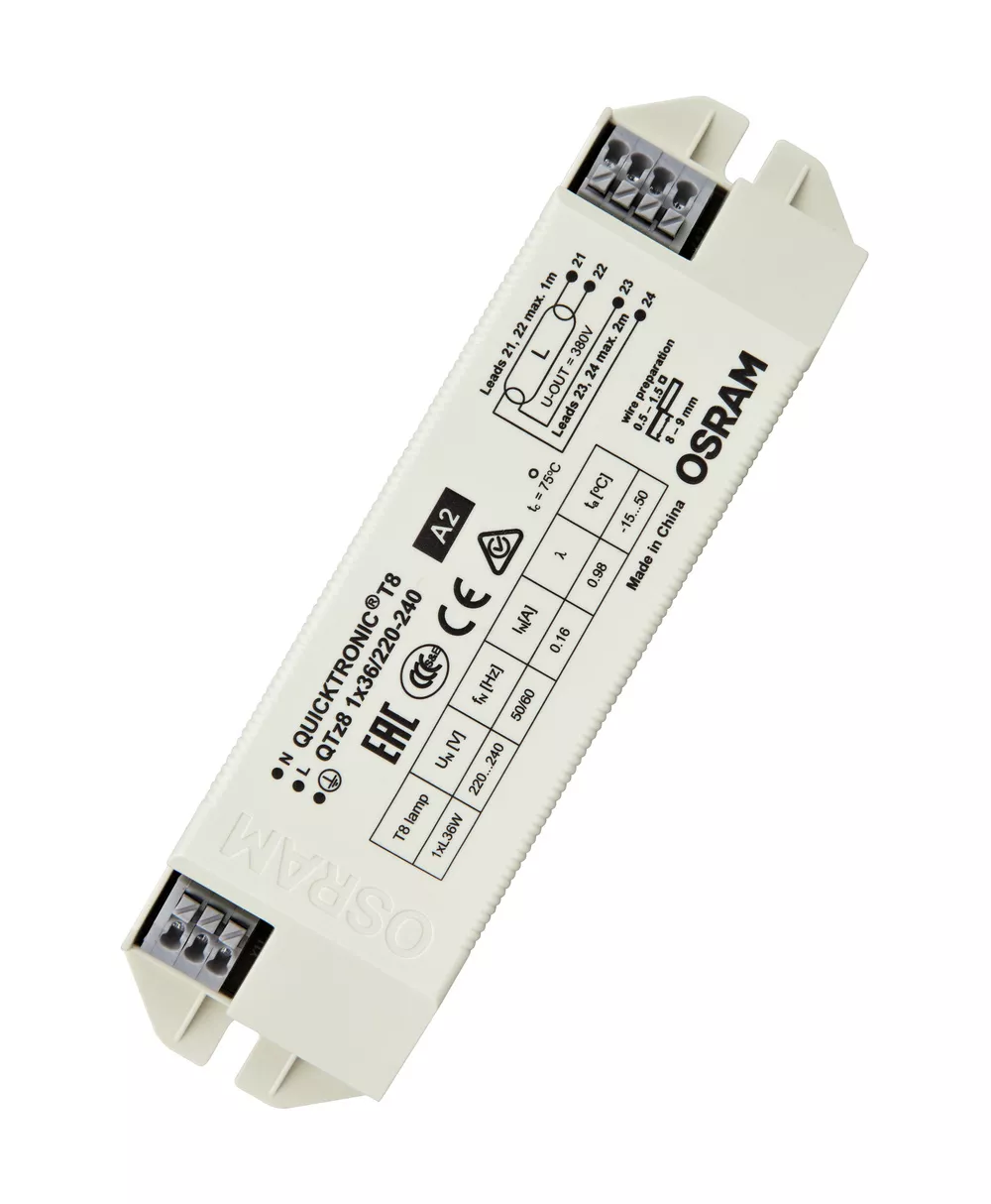 Stateczniki elektroniczne do świetlówek liniowych T8/Æ o średnicy 26 mm. Cechy produktu: Napięcie zasilania: 220…240 V. Napięcie sieciowe: 198…264 V. Częstotliwość linii: 50 Hz | 60 Hz. Wskaźnik sprawności energetycznej EEI: A2. Zalety produktu: Kompaktowa obudowa. Automatyczny restart po wymianie lampy. Obszary zastosowań: Budynki publiczne. Hale sportowe. Linie świetlne. Przeznaczony do opraw o klasie ochronności I.