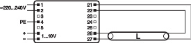Stateczniki elektroniczne z funkcją ściemniania do świetlówek T5 (16 mm) sterowane sygnałem 1…10 V. Cechy produktu: Sterowanie przez sygnał 1...10 V. Napięcie zasilania: 220…240 V. Częstotliwość linii: 0 Hz | 50 Hz | 60 Hz. Napięcie sieciowe: 198…264 V. Zakres regulacji: 1…100 % strumienia świetlnego. Włączenie lampy: w przeciągu 0,6 s. Trwałość: > 100 000 h (dla T = 65 °C przy Tc). Automatyczne wyłączenie niesprawnych lamp po upływie trwałości (EoL T.2). Wskaźnik sprawności energetycznej EEI: A1 BAT. Ochrona przed przegrzaniem: odprowadzanie ciepła przy wysokich temperaturach w punkcie pomiarowym tc. Bezpieczeństwo: zgodnie z PN-EN 61347-2-3. Praca lampy: zgodnie z PN-EN 60929. Tłumienie RI: zgodnie z PN-EN 5015:2006+A1:2007+A2:2009/CISPR 15. Harmoniczne prąd:u zgodnie z PN-EN 61000-3-2. Odporność zgodna z normą EN 61547. Zalety produktu: Ten sam strumień świetlny z prądem stałym i przemiennym. Doskonałe włączenie lampy dla zastosowań z czujnikami ruchu. Regulowanie strumienia świetlnego lamp amalgamatowych bez migotania lub ograniczenia trwałości. Bardzo wysoka sprawność dzięki technologii samoczynnego odłączenia. Automatyczny restart po wymianie lampy. Elektroniczne układy zasilające zgodne ze standardem MINERGIE dzięki bardzo niskiemu zużyciu energii w czasie czuwania. Konfigurowalna charakterystyka zasilania awaryjnego. Obszary zastosowań: Przeznaczone dla instalacji awaryjnych. Przemysł. Biura wielkopowierzchniowe, korytarze i magazyny. Budynki publiczne. Przeznaczony do opraw o klasie ochronności I.