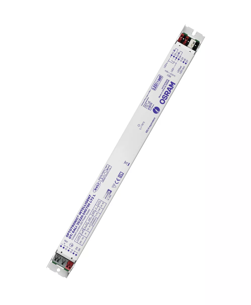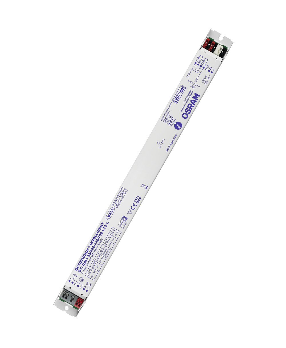 '- Sterowanie DALI SELV LEDset (LT2). Cechy produktu: Napięcie zasilania: 220…240 V. Częstotliwość linii: 0 Hz | 50 Hz | 60 Hz. Napięcie sieciowe: 198…264 V. Bezpieczeństwo zgodnie z normami PN-EN 61347-1, 61347-2-3, 61347-2-13, 62384. Tłumienie IR zgodnie z PN-EN 55015:2007+A1:2007/CDN. Harmoniczne prąd:u zgodnie z PN-EN 61000-3-2. Odporność zgodna z normą EN 61547. Trwałość: aż do 100 000 godzin (temperatura w punkcie T<sub>c</sub> = 65 °C, maks. 10 % współczynnik uszkodzeń). Dostępna wersja SELV i nieizolowana. Zalety produktu: Wszechstronny sterownik okien DALI o mocy aż do 90 W ze względu na elastyczną charakterystykę wyjściową. Bardzo wysoka skuteczność i niezawodność. Ochrona systemu dzięki odprowadzeniu ciepła i Smart Control. Obszary zastosowań: Instalacja w systemach oświetlenia awaryjnego zgodnie z IEC 61347-2-13, załącznik J. Nadaje się do użytku w oprawach z elastycznym ustawieniem wartości prądu (DALI, CLO, LEDset). Przeznaczony do opraw o klasie ochronności I.