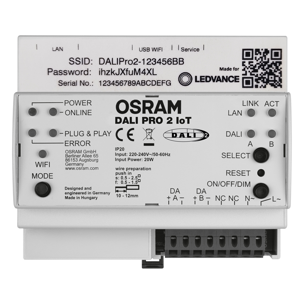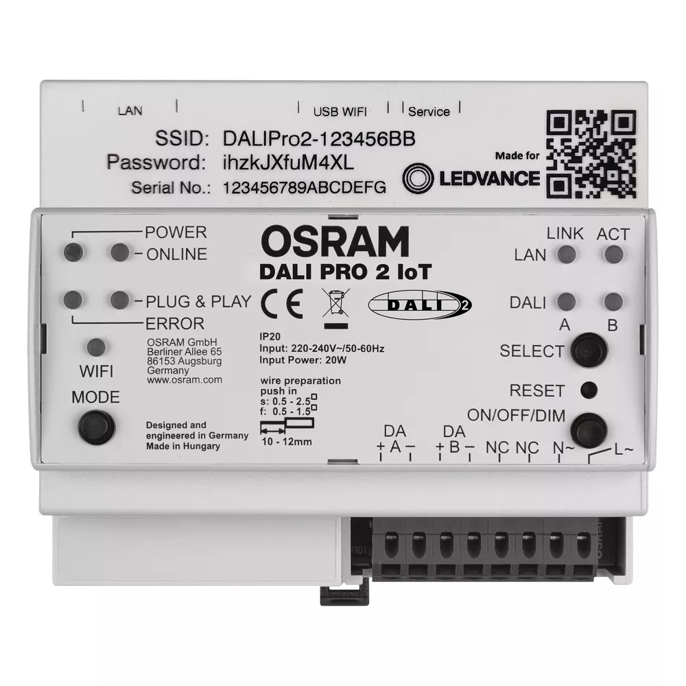 Sterowniki IOT do systemów sterowania oświetleniem. Cechy produktu: Certyfikat DALI-2. System IoT z wbudowaną bramą zdalnego dostępu do danych. Kompatybilny z oprogramowaniem PC Tool i WebGui. Integracja z systemem zarządzania budynkiem przez opcjonalny interfejs KNX. Proces uruchamiania przez Ethernet/WLAN. Mała obudowa: tylko 6 TE (szyna DIN). Zalety produktu: BIOLUX Human Centric Lighting zapewnia wysokiej jakości doświetlenie światłem dziennym w pomieszczeniach biurowych. Zdalny dostęp do zmian w instalacji z dowolnej lokalizacji. Połączenie LAN umożliwiające podłączenie do 8 kontrolerów w jednej sieci. Cloud API do bezpośredniego połączenia zewnętrznej chmury z kontrolerem DALI Pro2 IoT. Automatyczne testowanie i raportowanie instalacji oświetlenia awaryjnego. Gotowy na opcjonalne usługi VIVARES Cloud Services. Obszary zastosowań: Nadaje się do instalacji wewnętrznych. Sterowanie pokojowe, podłogowe, światłem dziennym. Podłączenie czujników światła i/lub obecności w systemach DALI. LEDVANCE BIOLUX Human Centric Lighting zapewnia biologicznie efektywne oświetlenie w pomieszczeniach. Zastosowania RGB i Tunable White. Paski LED.