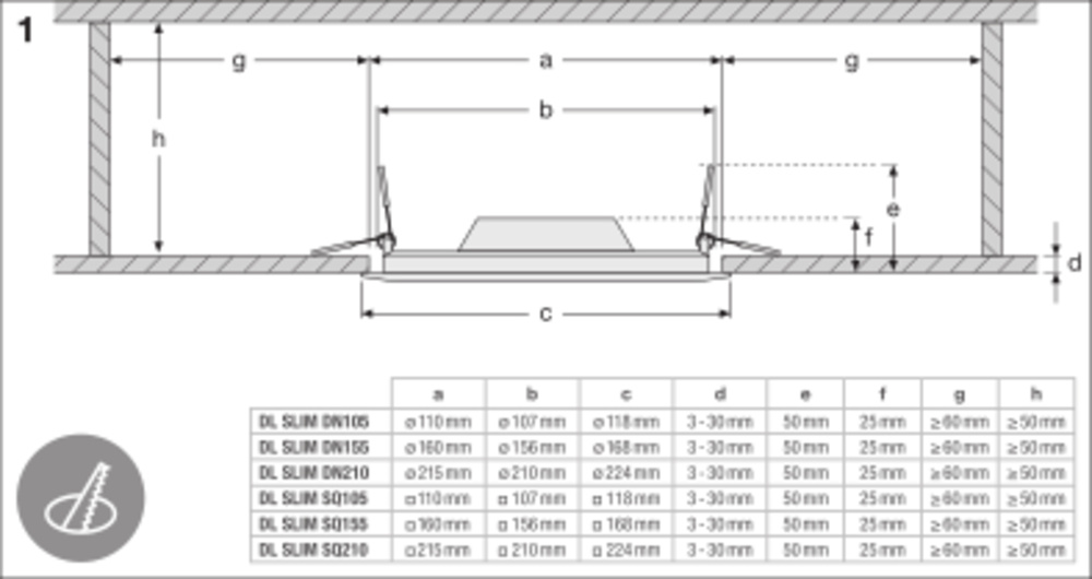 Płaskie oprawy oświetleniowe typu Downlight ze zintegrowanym zasilaczem, o okrągłym kształcie. Cechy produktu: Wąska widzialna ramka. Puszka podłączeniowa z wciskanymi terminalami podłączeniowymi niewymagającymi narzędzi. Reflektor wykonany z nieżółknącego PMMA o długiej trwałości. Zalety produktu: Bardzo wąska obudowa. Mała głębokość montażu. Wysoka skuteczność świetlna. Energooszczędność do 60% (w porównaniu z oprawami oświetleniowymi wyposażonymi w świetlówki). Bardzo jednorodne światło. Funkcjonalne wzornictwo. Łatwa instalacja przy pomocy szybkozłącza. Prosta instalacja dzięki zintegrowanemu sterownikowi. Obszary zastosowań: Bezpośredni zamiennik opraw oświetleniowych do świetlówek kompaktowych. Oświetlenie ogólne. Strefy publiczne. Schody. Korytarze. Hole. Sklepy. Wyposażenie / Akcesoria: Ramy do montażu powierzchniowego dostępne jako wyposażenie dodatkowe. Porady dotyczące bezpieczeństwa: Wszystkie podłączenia elektryczne muszą być wykonane przez osobę wykwalifikowaną.. Uwaga, ryzyko porażenia prądem.. Oprawy nie nadają się do pokrywania materiałem termoizolacyjnym..