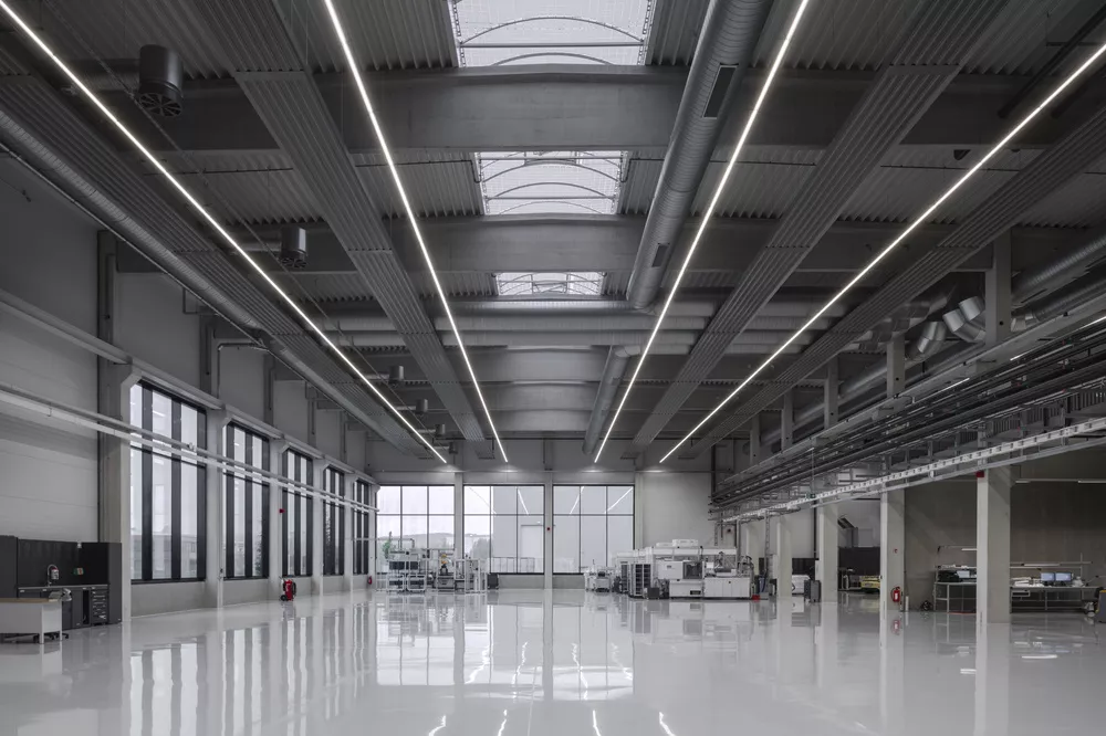 Wkładki opraw oświetleniowych z szerokim rozsyłem strumienia świetlnego. Cechy produktu: Kąt wiązki światła: 105°. Skuteczność świetlna: do 135 lm/W. Zamocowane złącza do podłączeń elektrycznych. Obudowa aluminiowa wysokiej jakości. Stopień ochrony: IP20. Zgodność ze zunifikowanym językiem projektowania LEDVANCE (projekt SCALE). Zalety produktu: Innowacyjny układ optyczny dzięki soczewkom umieszczonym na całej długości oprawy oświetleniowej. Wewnętrzne uchwyty zapobiegają upadkowi oprawy oświetleniowej podczas montażu. Łatwe podłączenia elektryczne i mechaniczne do szyny montażowej dzięki mocowaniu na zatrzask. Równomierny rozsył strumienia świetlnego. Wsporniki montażowe niewidoczne po zamontowaniu. System Plug-and-play umożliwia łatwą instalację. Wzornictwo wysokiej jakości. Możliwość tworzenia linii składających się z maksymalnie 81 opraw (On-Off) o całkowitej długości 124 m / 91 opraw (DALI) o całkowitej długość 151 m. Oszczędność energii do 65% w porównaniu z oprawami świetlówkowymi 2 x 80 W. Dostępna wersja DALI. Obszary zastosowań: Bezpośredni zamiennik opraw oświetleniowych do świetlówek kompaktowych. Hale przemysłowe, magazyny wysokiego składowania, garaże, sklepy z narzędziami. Hurtownie, supermarkety. Wyposażenie / Akcesoria: Szyna montażowa ze stałym zintegrowanym przewodem, ze złączem 5- (On-Off) / 7-pinowym (DALI).
