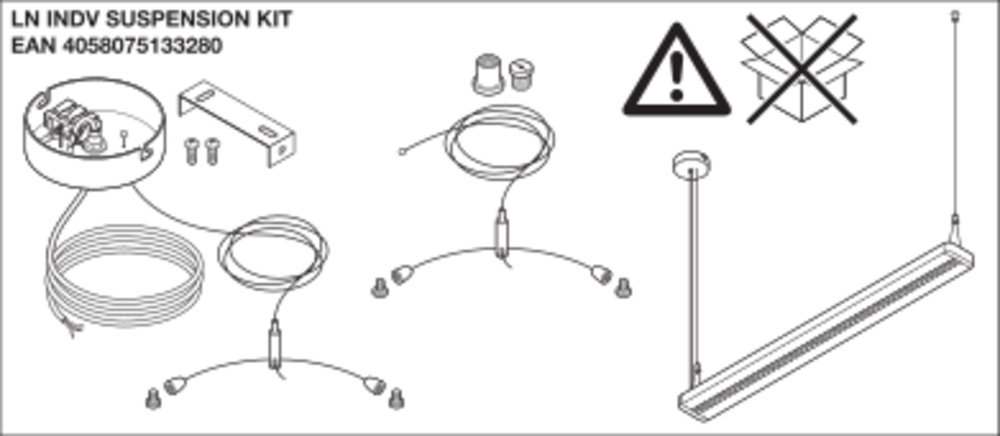 Zwieszakowe oprawy oświetleniowe do instalacji samodzielnej lub jako element linii świetlnych. Cechy produktu: Oświetlenie pośrednie 850 lm. Montaż powierzchniowy, zestaw do podwieszania. Możliwość łączenia w linię świetlną za pomocą adaptera połączenia liniowego (montaż na powierzchni lub zwieszany). Dostępne długości: 1200 lub 1500 mm. Skuteczność świetlna: do 120 lm/W. Początkowa jednolitość barwy: 3 SDCM. Próba rozżarzonym drutem zgodna z normą IEC 60695-2-12: 850 °C. Trwałość (L70/B50): 60 000 godzin (przy 25 °C). Zalety produktu: Równomierny rozsył strumienia świetlnego i obniżone olśnienie dzięki optyce IndiviLED®. Zwiększony komfort oświetlenia dzięki bezpośredniemu i pośredniemu rozsyłowi światła. Oszczędność energii aż do 50% w porównaniu z listwami oświetleniowymi T5. Dostępne wersje z EUZ DALI. 5-letnia gwarancja. Obszary zastosowań: Bezpośredni zamiennik świetlówkowych opraw oświetleniowych. Biura, szkoły. Ogólne oświetlenie wnętrz. Oświetlenie korytarzy i wejść. Bezproblemowe oświetlenie liniowe. Oświetlenie sklepowe. Wyposażenie / Akcesoria: Dostępna sufitowa puszka podłączeniowa. Dostępny zestaw do montażu podwieszanego. Dostępny adapter do podłączenia liniowego. Dostępny zestaw oprzewodowania przelotowego. Porady dotyczące bezpieczeństwa: Wszystkie podłączenia elektryczne muszą być wykonane przez osobę wykwalifikowaną.. Jeśli zewnętrzny elastyczny kabel lub przewód tej oprawy ulegnie uszkodzeniu, jego wymiany może dokonać wyłącznie osoba wykwalifikowana, aby uniknąć zagrożenia.. Uwaga, ryzyko porażenia prądem.. Produkt w klasie ochrony I. Wszystkie przewodzące prąd, metalowe części obudowy, które mogą absorbować napięcie podczas pracy lub podczas konserwacji w przypadku awarii, muszą być stale PODŁĄCZONE do przewodu uziemiającego..
