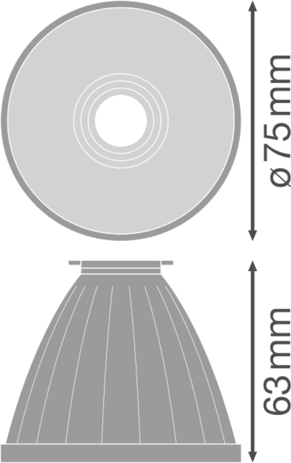 Wymienny odbłyśnik. Cechy produktu: Dostępne opcjonalne odbłyśniki o różnych kątach rozsyłu światła. Zalety produktu: Odbłyśnik można łatwo zmienić dzięki zaczepowi bagnetowemu i gumowej przyssawce. Przezroczysty klosz chroni odbłyśnik przed pyłem i dotykaniem. Wysoka skuteczność świetlna.