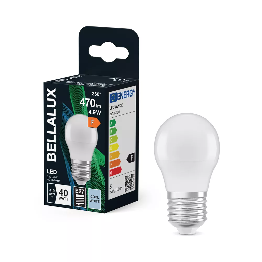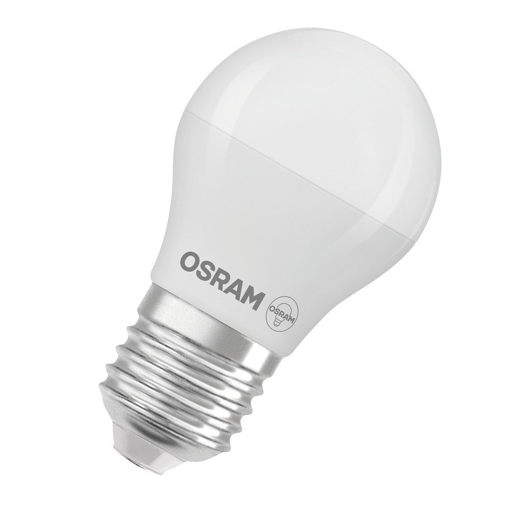 Lampy LED w kształcie klasycznej żarówki kulistej. Cechy produktu: Lampy LED dla napięcia sieciowego. Nieprzystosowane do pracy z regulatorami. Lampy niezawierające rtęci. Zalety produktu: Niskie obciążenie cieplne (w porównaniu ze standardowym produktem referencyjnym). Niższe zużycie energii w porównaniu do lamp żarowych lub halogenowych. Odporność na wstrząsy i drgania dzięki technologii LED. Brak promieniowania UV i podczerwonego w wiązce światła. Natychmiast 100 % światła, bez czasu nagrzewania. Bezpośrednio zastępuje zwykłe żarówki. Obszary zastosowań: Oświetlenie ogólne. Zastosowania domowe. Eksploatacja na zewnątrz wyłącznie w oprawach zewnętrznych (co najmniej IP65). Porady dotyczące bezpieczeństwa: Nie dotykaj lampy, jeśli jest stłuczona.. Nie wolno używać, jeśli zewnętrzne źródło światła jest uszkodzone..