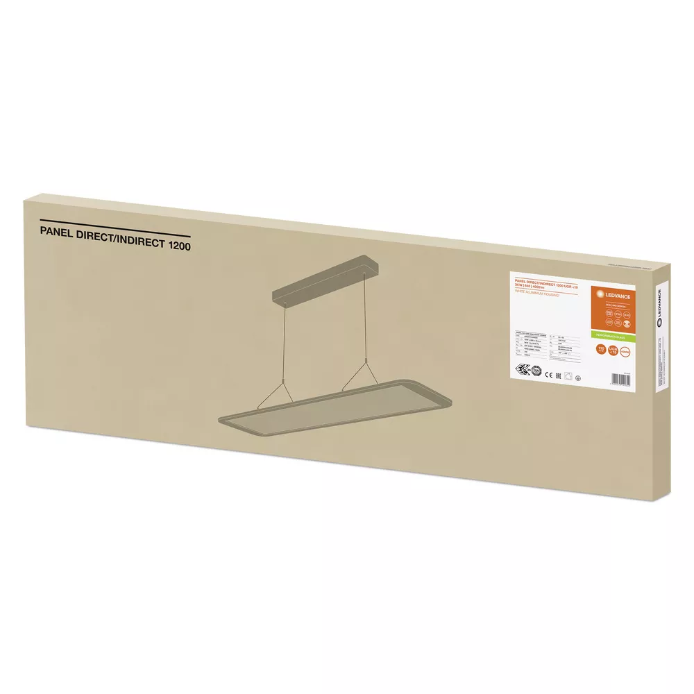 Oprawy oświetleniowe z podświetleniem krawędziowym do montażu podwieszanego, przeznaczone do pośredniego rozsyłu światła, redukcja olśnienia 1200 mm. Cechy produktu: Prostokątne (1200 mm x 300 mm) niezależne oprawy oświetleniowe z bezpośrednim (70 %) i pośrednim (30 %) rozsyłem światła. Zasilacz zintegrowany ze skrzynką zdalnego sterownika. UGR  ≤ 19  zgodnie z EN12464-1. Wysoka skuteczność świetlna: do 110 lm/W. Trwałość (L70/B50): 80 000 h (przy 25°C). Zgodność ze zunifikowanym językiem projektowania LEDVANCE (projekt SCALE). Bardzo smukła obudowa z aluminium. Dostępne wersje opraw ze sterownikiem DALI-2 obsługującym IoT lub z technologią IoT Zigbee 3.0. Zalety produktu: Oprawy oświetleniowe z podświetleniem krawędziowym do montażu podwieszanego, przeznaczone do bezpośredniego (70%) i pośredniego rozsyłu światła (30%). Atrakcyjna i funkcjonalna konstrukcja przeznaczona do zastosowań biurowych. Dobra redukcja olśnienia (UGR ≤ 19). Bardzo jednorodne światło. Niskie koszty konserwacji i eksploatacji. Zewnętrzny zasilacz zwiększa uniwersalność. Specjalna konstrukcja odbłyśnika zapewnia oświetlenie z redukcją olśnienia. Łatwa i szybka instalacja. Niewielkie tętnienie światła dzięki specjalnemu statecznikowi elektronicznemu. 5-letnia gwarancja. Obszary zastosowań: Wydajny zamiennik tradycyjnych opraw oświetleniowych do świetlówek T8 lub T5. Biura. Sale konferencyjne. Pomieszczenia konferencyjne. Recepcje i hole. Wyposażenie / Akcesoria: Dostarczony zestaw do montażu podwieszanego. Porady dotyczące bezpieczeństwa: Wszystkie podłączenia elektryczne muszą być wykonane przez osobę wykwalifikowaną.. Uwaga, ryzyko porażenia prądem.. Oprawy nie nadają się do pokrywania materiałem termoizolacyjnym.. Produkt w klasie ochrony I. Wszystkie przewodzące prąd, metalowe części obudowy, które mogą absorbować napięcie podczas pracy lub podczas konserwacji w przypadku awarii, muszą być stale PODŁĄCZONE do przewodu uziemiającego..