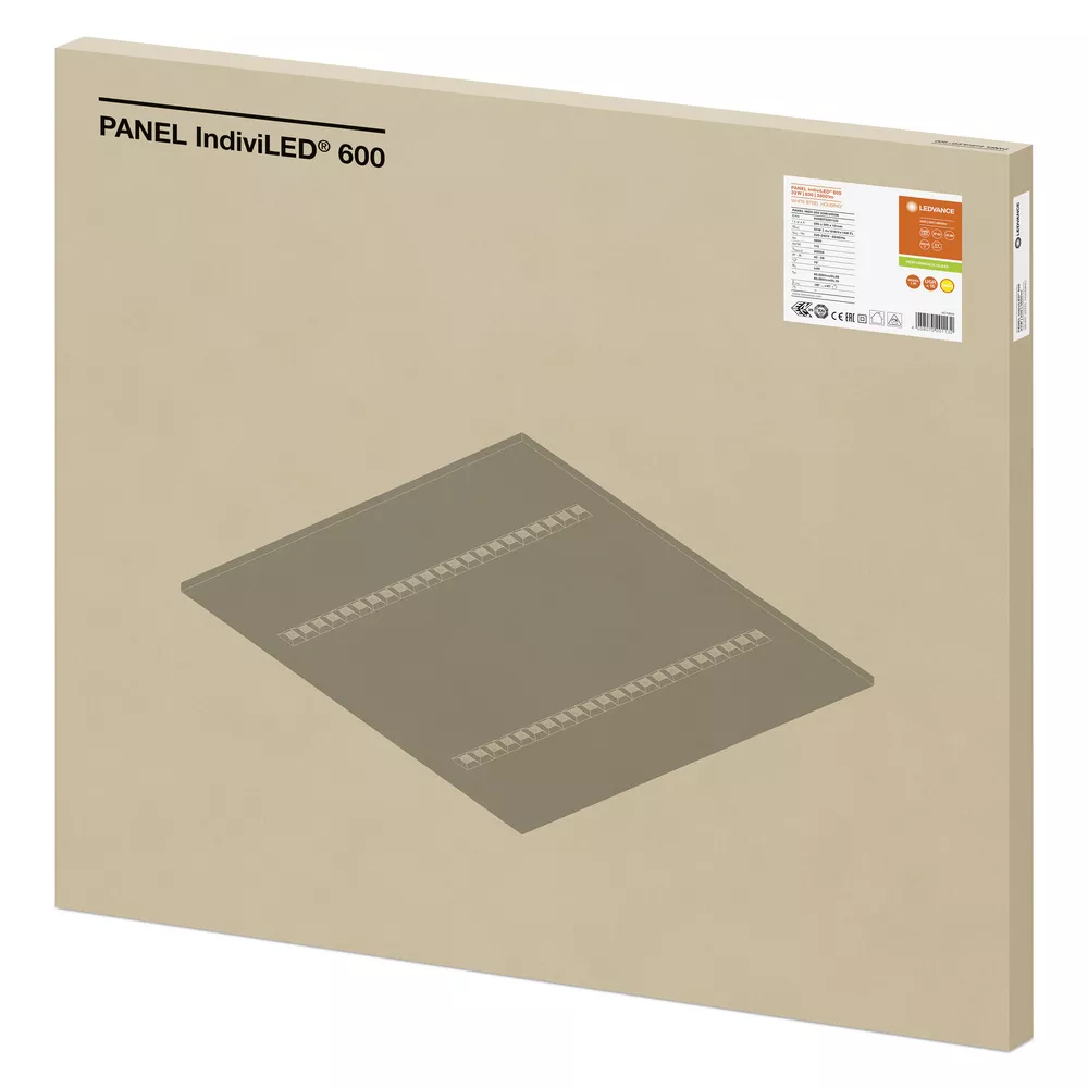 Kwadratowa oprawa do zabudowy z optyką IndiviLED®, 600 mm. Cechy produktu: Trwałość (L80/B50): do 50 tys. godzin (przy 25°C). Metalowa obudowa, klosze i odbłyśniki z poliwęglanów (PC). Strumień świetlny: do 4000 lm. Skuteczność świetlna: do 120 lm/W. Początkowa jednolitość barwy: 3 SDCM. Próba rozżarzonym drutem zgodna z normą IEC 60695-2-12: 850 °C. Dostępne wersje opraw ze sterownikiem DALI-2 obsługującym IoT lub z technologią IoT Zigbee 3.0. Zalety produktu: Równomierny rozsył strumienia świetlnego i obniżone olśnienie dzięki optyce IndiviLED®. Aż do 50 % oszczędności energii (w porównaniu z oprawami świetlówkowymi). Trwała konstrukcja (IK08). Niewielkie tętnienie światła dzięki specjalnemu statecznikowi elektronicznemu. 5-letnia gwarancja. Obszary zastosowań: Bezpośredni zamiennik świetlówkowych opraw oświetleniowych. Korytarze. Biura. Pomieszczenia konferencyjne. Recepcje. Hole. Windy. Odpowiednie oprawy do zabudowy w suficie, moduł 600 x 600 mm. Wyposażenie / Akcesoria: Dostępne są akcesoria do kilku typów montażu. Linka zabezpieczająca oprawę oświetleniową w zestawie. Stateczniki zewnętrzne w zestawie.