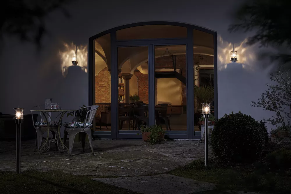 Oprawy oświetleniowe ze stali nierdzewnej ze szklanym kloszem. Cechy produktu: Obudowa ze stali nierdzewnej. Klosz wykonany z przezroczystego szkła, młotkowane wykończenie. Dostępne w wersji z czujnikiem podczerwieni lub bez. Dostępne jako ścienne lub słupkowe oprawy oświetleniowe. Nadaje się do inteligentnych zastosowań dzięki kompatybilności z lampami LED SMART+. Zalety produktu: Wysoka uniwersalność wyboru źródła światła dzięki trzonkowi E27. Łatwa i szybka instalacja. Obszary zastosowań: Zastosowania zewnętrzne (IP44). Elewacje budynków. Oświetlenie awaryjne. Patia, balkony. Oświetlenie ścieżek dla pieszych. Podjazdy. Wyposażenie / Akcesoria: Kompletne akcesoria do montażu i podłączenia w zestawie. Źródła światła nie są dostarczane w zestawie. Porady dotyczące bezpieczeństwa: Wszystkie podłączenia elektryczne muszą być wykonane przez osobę wykwalifikowaną.. Uwaga, ryzyko porażenia prądem.. Produkt w klasie ochrony I. Wszystkie przewodzące prąd, metalowe części obudowy, które mogą absorbować napięcie podczas pracy lub podczas konserwacji w przypadku awarii, muszą być stale PODŁĄCZONE do przewodu uziemiającego..
