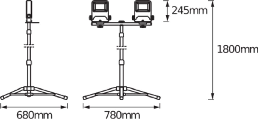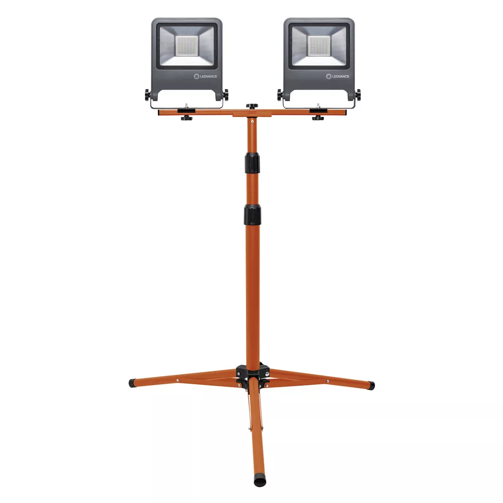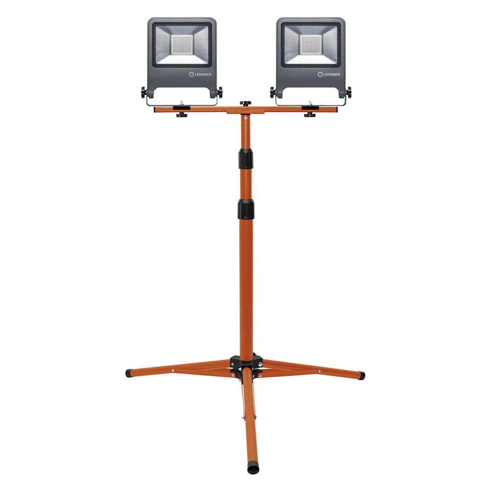 Uniwersalne oprawy robocza LED ze statywem. Cechy produktu: Dostępna z jedną lub dwiema głowicami oprawy oświetleniowej. Kąt obrotu głowicy oprawy oświetleniowej: 360°, pochylenie: 180°. Stopień ochrony, głowica i obudowa oprawy: IP65. Stopień ochrony, wtyczka: IP44. Regulacja wysokości statywu do 1,8 m. Złącze otwierane jednym ruchem umożliwia regulację kąta głowicy oprawy oświetleniowej. Wtyczka typu E/F. Zalety produktu: Możliwość składania zapewnia łatwe przechowywanie. Oszczędność energii aż do 80% w porównaniu z oprawami do żarówek halogenowych. Półmatowy klosz z hartowanego szkła zapewnia równomierne oświetlenie. Obszary zastosowań: Renowacja. Garaże. Piwnice. Warsztaty. Wyposażenie / Akcesoria: Kompletne akcesoria do montażu i podłączenia w zestawie. Porady dotyczące bezpieczeństwa: Produkt w klasie ochrony I. Wszystkie przewodzące prąd, metalowe części obudowy, które mogą absorbować napięcie podczas pracy lub podczas konserwacji w przypadku awarii, muszą być stale PODŁĄCZONE do przewodu uziemiającego..