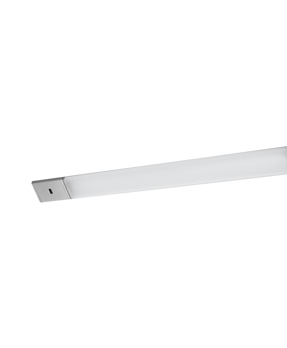 Niskonapięciowe podszafkowe oprawy oświetleniowe do montażu w narożnikach. Cechy produktu: Strumień świetlny: do 480 lm. Włączanie i wyłączanie za pomocą ruchu w odległości 5 cm od czujnika ruchu na podczerwień. Bezstopniowe przyciemnianie poprzez zakrycie czujnika ruchu na podczerwień z odległości 5 cm przez przynajmniej 1 sekundę. Materiał: aluminium. Kolor: srebrny. Dostępne 2 długości: 35 i 55 cm. Oprawy dostępne w pojedynczych lub podwójnych zestawach. Zalety produktu: Niskonapięciowa oprawa oświetleniowa zasilana za pomocą zewnętrznego zasilacza. Odpowiednie do montażu w narożnikach. Równomierny rozsył strumienia świetlnego. Łatwy i szybki montaż prawie na każdej powierzchni (taśma samoprzylepna lub śruby). Obszary zastosowań: Oświetlenie półek i oświetlenie podszafkowe. Wyposażenie / Akcesoria: Zewnętrzny zasilacz sieciowy (długość przewodu zasilającego: 1,5 m) w zestawie. Porady dotyczące bezpieczeństwa: Aby ograniczyć ryzyko uduszenia, elastyczne przewody PODŁĄCZONE do tej oprawy należy solidnie przymocować do ściany, jeśli znajdują się w zasięgu ręki..