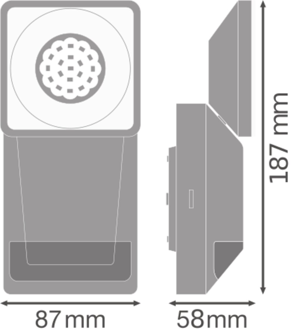 Ścienne oprawy oświetleniowe o wysokiej skuteczności, z czujnikami, o wąskim kącie rozsyłu światła, innowacyjnym designie optycznym. Cechy produktu: Do wyboru cztery tryby pracy (stale włączone oświetlenie przez sześć godzin, tryb czuwania, włączanie za pomocą ruchu lub po zmroku). Regulowana głowica oprawy oświetleniowej. Stopień ochrony: IP55. Odporność na uderzenie: IK05. Klasa ochronności: II. Zalety produktu: Mała oprawa punktowa do precyzyjnego oświetlenia. Oświetlenie zgodne z wymaganiami dzięki regulowanej głowicy oprawy oświetleniowej. Łatwa i szybka instalacja. Obszary zastosowań: Na zewnątrz. Strefy wejściowe. Pasaże handlowe. Porady dotyczące bezpieczeństwa: Wszystkie podłączenia elektryczne muszą być wykonane przez osobę wykwalifikowaną.. Uwaga, ryzyko porażenia prądem.. Aby ograniczyć ryzyko uduszenia, elastyczne przewody PODŁĄCZONE do tej oprawy należy solidnie przymocować do ściany, jeśli znajdują się w zasięgu ręki..