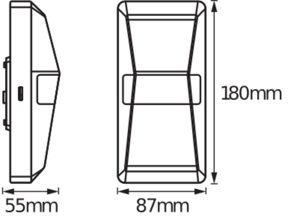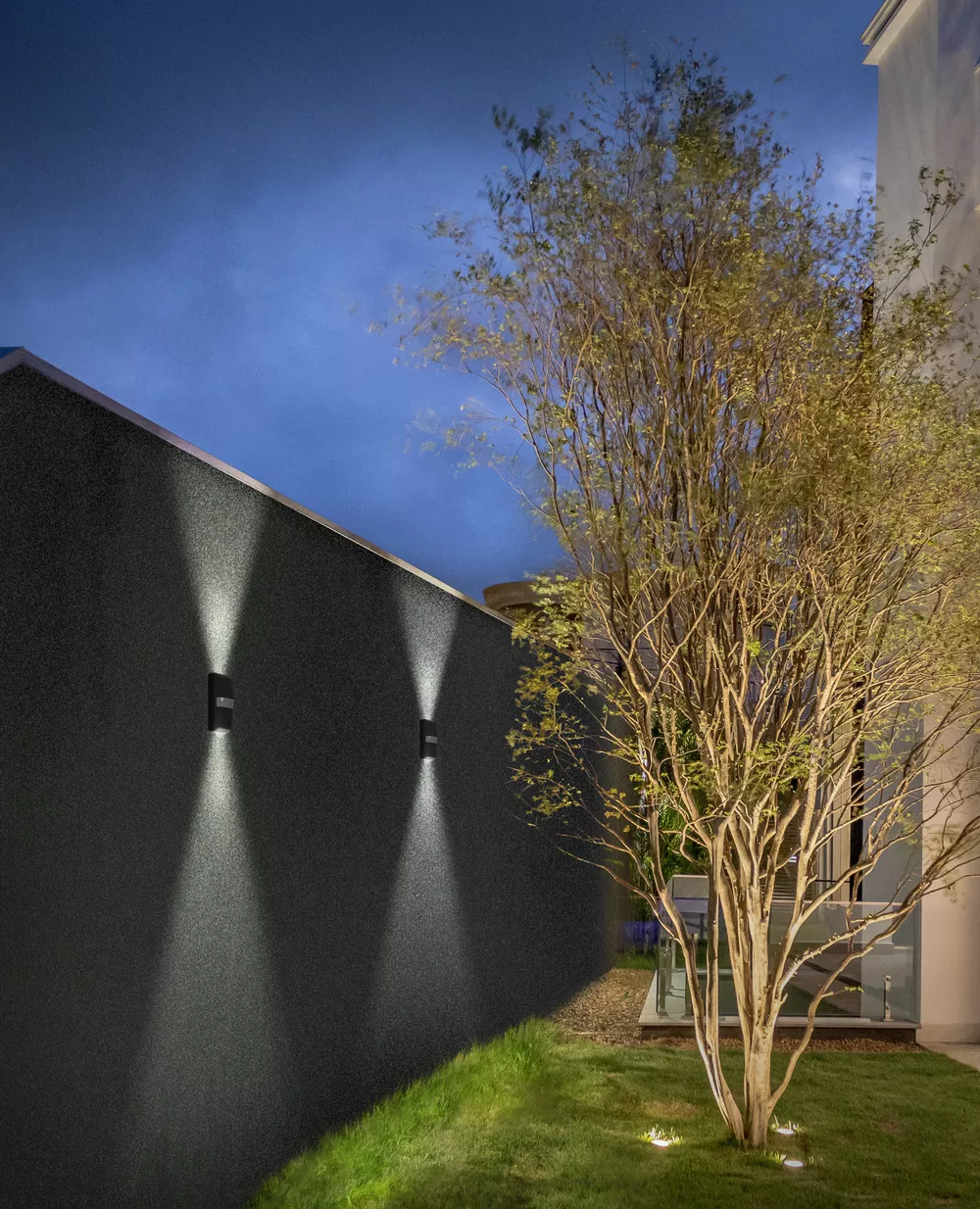 Ścienne oprawy oświetleniowe o nowoczesnym kształcie, z czujnikami, z punktami świetlnymi skierowanymi w górę i w dół. Cechy produktu: Do wyboru cztery tryby pracy (stale włączone oświetlenie przez sześć godzin, tryb czuwania, włączanie za pomocą ruchu lub po zmroku). Stopień ochrony: IP55. Odporność na uderzenie: IK05. Klasa ochronności: II. Zalety produktu: Dekoracyjne oświetlenie ścienne. Łatwa i szybka instalacja. Obszary zastosowań: Na zewnątrz. Elewacje budynków. Pasaże handlowe. Porady dotyczące bezpieczeństwa: Wszystkie podłączenia elektryczne muszą być wykonane przez osobę wykwalifikowaną.. Uwaga, ryzyko porażenia prądem.. Sprawdź przydatność ściany i sufitu. Jeśli nie jesteś pewien, zasięgnij profesjonalnej porady..