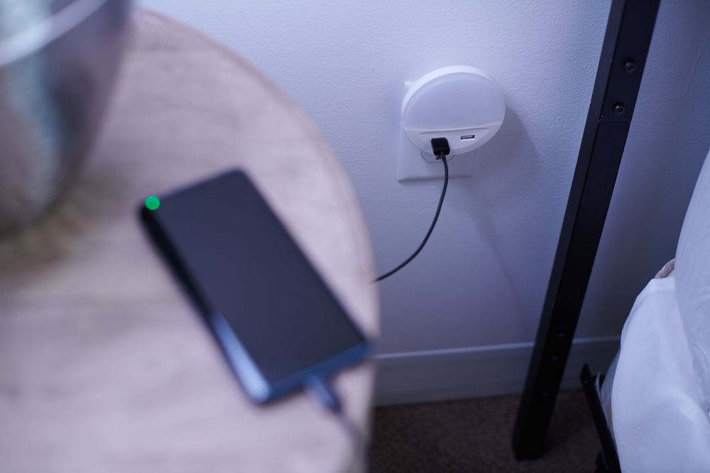 Gniazdkowa lampka nocna z wyjściem USB i możliwością dokowania telefonu. Cechy produktu: Port micro USB z funkcją ładowania. Możliwość zintegrowania stacji dokującej telefonu z tyłu. Wbudowany czujnik światła dziennego/nocnego. Zalety produktu: Automatyczne włączanie i wyłączanie w zależności od ilości dostępnego światła dziennego. Plug and Play dzięki EU Plug. Wydajne energetycznie dzięki technologii LED. Obszary zastosowań: Sypialnie. Pokoje dziecięce. Eksploatacja tylko w pomieszczeniach. Porady dotyczące bezpieczeństwa: Ten produkt nie jest zabawką. Nie powinien być pozostawiany bez nadzoru w rękach dzieci ani obsługiwany przez dzieci.. Nie jest przeznaczony do zastępowania tradycyjnego oświetlenia w gospodarstwach domowych..