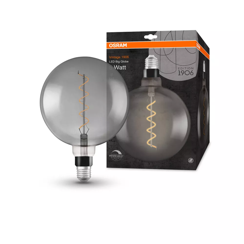 Ściemnialne lampy LED , edycja vintage, klasyczny kształt żarówki kulistej . Cechy produktu: Lampy LED dla napięcia sieciowego. Lampa wykonana ze szkła. Trwałość do 15 000 h. Kąt wiązki światła: do 360°. Ściemnialne. Dobra jakość światła, wskaźnik oddawania barw Ra: ≥ 80; stała chromatyczność. Zalety produktu: Niższe zużycie energii w porównaniu do lamp żarowych lub halogenowych. Natychmiast 100 % światła, bez czasu nagrzewania. Łatwy montaż zamiast zwykłych żarówek. Lampy wyposażone w innowacyjną technologię „włókien” LED. Obszary zastosowań: Doskonałe rozwiązanie do instalacji dekoracyjnych. Zastosowania domowe. Oświetlenie ogólne. Do użytku na zewnątrz tylko w odpowiednich oprawach zewnętrznych. Porady dotyczące bezpieczeństwa: Nie dotykaj lampy, jeśli jest stłuczona.. Nie wolno używać, jeśli zewnętrzne źródło światła jest uszkodzone..