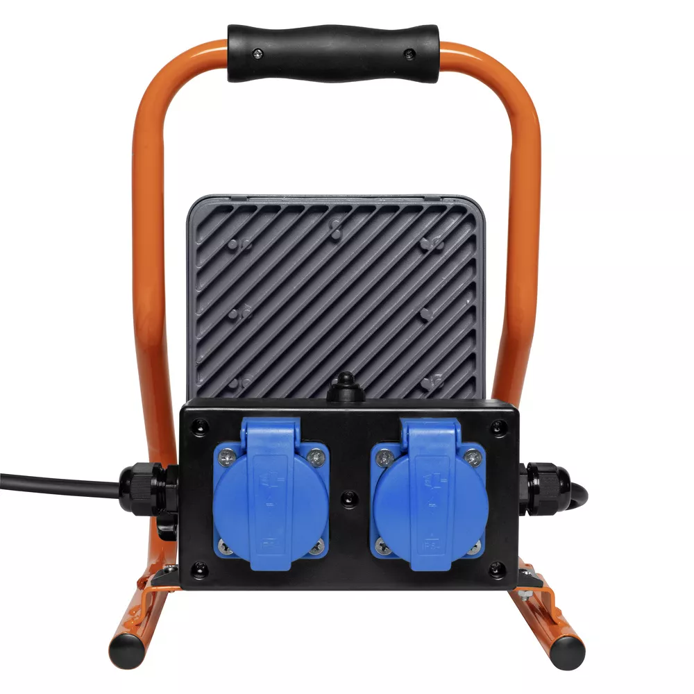 Uniwersalne, przenośne oprawy robocze z dołączonymi gniazdami zasilania. Cechy produktu: Wyposażone w gniazda zasilające, obciążenie do 3000 W. Gniazdo zasilające zabezpieczone samozamykającą się osłoną. Wewnętrzny przełącznik do sterowania oświetleniem, gniazda zasilające stale pozostające pod napięciem. Złącze otwierane jednym ruchem umożliwia regulację kąta głowicy oprawy oświetleniowej. 3-metrowy przewód z wtyczką typu E/F. Zalety produktu: 2 w 1, lampa robocze i gniazdo. Oszczędność energii aż do 80% w porównaniu z oprawami do żarówek halogenowych. Półmatowy klosz z hartowanego szkła zapewnia równomierne oświetlenie. Obszary zastosowań: Zastosowania zewnętrzne (IP44). Renowacja. Garaże. Piwnice. Warsztaty. Porady dotyczące bezpieczeństwa: Produkt w klasie ochrony I. Wszystkie przewodzące prąd, metalowe części obudowy, które mogą absorbować napięcie podczas pracy lub podczas konserwacji w przypadku awarii, muszą być stale PODŁĄCZONE do przewodu uziemiającego..