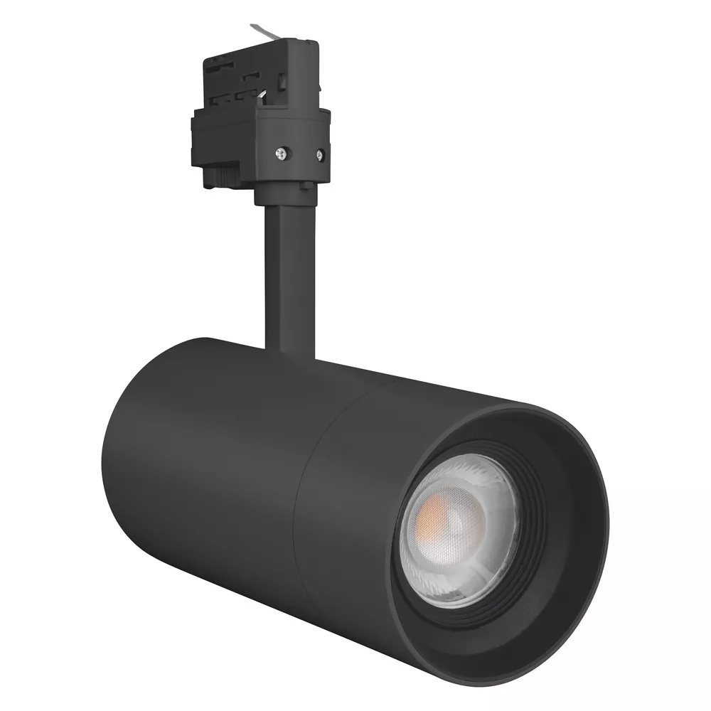 Oprawy oświetlenia punktowego do szynowych systemów zasilania 3- fazowego, ze ściemnianiem, klosz z mechaniczną regulacją ogniskowej. Cechy produktu: Mechaniczna regulacja kąta rozsyłu światła w zakresie od 15 ° do 55 °. Możliwość ściemniania (7% - 100%) przy pomocy potencjometru suwakowego umieszczonego na każdej oprawie. Wskaźnik oddawania barw Ra9: > 90. Początkowa jednolitość barw: ≤ 4 SDCM. Kąt obrotu: 350°, kąt odchylenia: 90°. Zgodność ze zunifikowanym językiem projektowania LEDVANCE (projekt SCALE). Solidna obudowa z odlewu ciśnieniowego aluminium. Dostępny w kolorze białym matowym (zbliżonym do RAL9016), matowym czarnym (zbliżonym do RAL9004). Skuteczność świetlna oprawy: do 70 lm/W. Zalety produktu: 3-fazowe oprawy punktowe, z możliwością ściemnianiania, klosz z mechaniczną regulacją zoom. W zestawie 3-fazowy adapter kompatybilny ze standardowymi listwami zasilającymi (GLOBAL, EUTRAC, POWERGEAR, STAFF, NORLUX, NUCO, NORDIC). Brak odwracania uwagi od oświetlanych obiektów dzięki minimalistycznej konstrukcji. Niewielkie tętnienie światła dzięki specjalnemu statecznikowi elektronicznemu. 5-letnia gwarancja. Obszary zastosowań: Bezpośredni zamiennik opraw oświetleniowych wykorzystujących lampy wyładowcze. Oświetlenie akcentujące. Galerie, muzea. Sklepy, przebieralnie, witryny sklepowe. Hotele, restauracje, sklepy. Porady dotyczące bezpieczeństwa: Wszystkie podłączenia elektryczne muszą być wykonane przez osobę wykwalifikowaną.. Uwaga, ryzyko porażenia prądem..