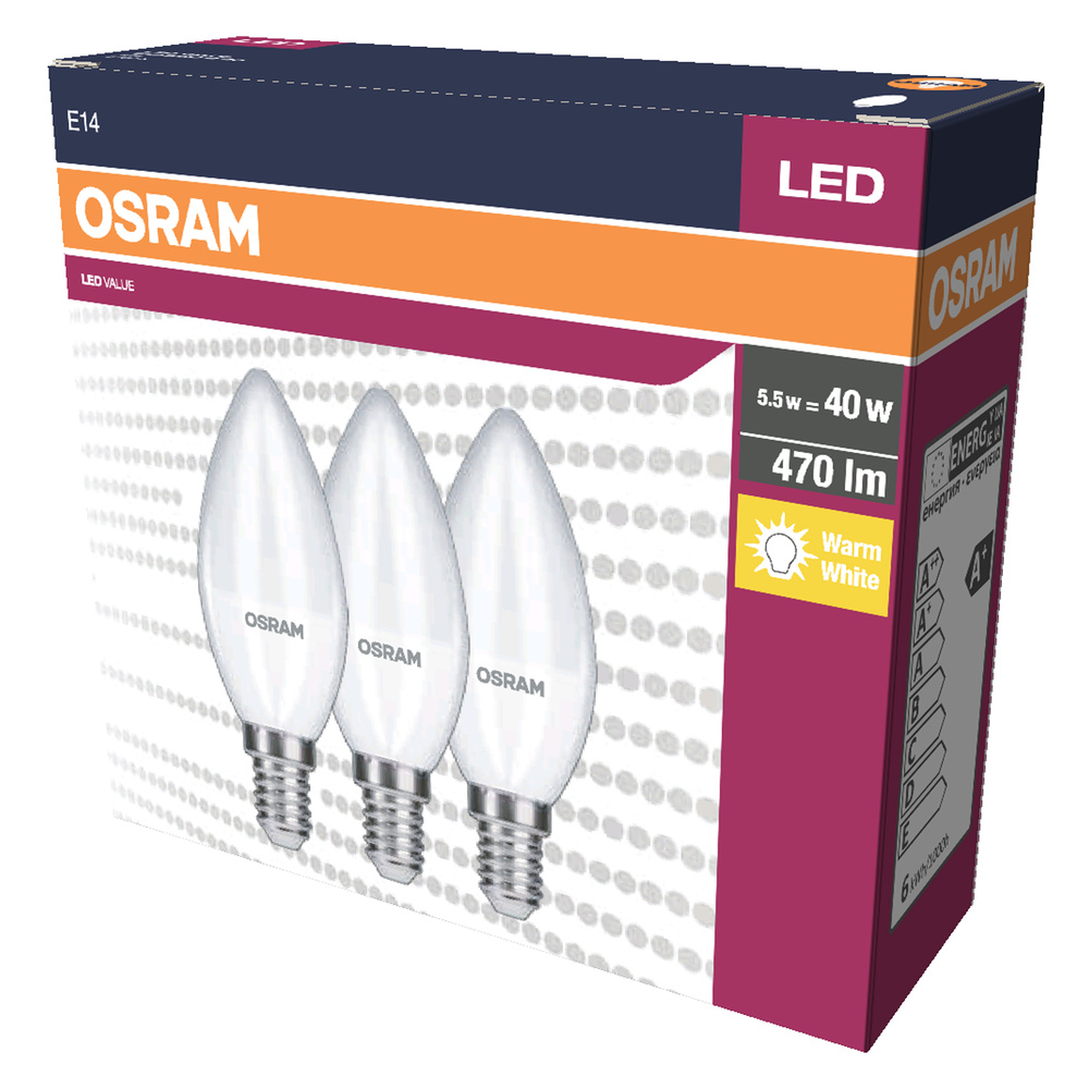 Lampy LED w kształcie klasycznej żarówki świecowej. Cechy produktu: LED zamienniki tradycyjnych żarówek. Brak możliwości regulacji strumienia świetlnego. Dobre oddawanie barw (Ra ≥ 80) i stabilność braw przez cały czas eksploatacji lampy. Zalety produktu: Niższe zużycie energii w porównaniu do lamp żarowych lub halogenowych. Bezpośrednio zastępuje zwykłe żarówki. Natychmiast 100 % światła, bez czasu nagrzewania. Obszary zastosowań: Oświetlenie ogólne. Zastosowania domowe. Żyrandole. Do użytku na zewnątrz tylko w odpowiednich oprawach zewnętrznych. Porady dotyczące bezpieczeństwa: Nie dotykaj lampy, jeśli jest stłuczona.. Nie wolno używać, jeśli zewnętrzne źródło światła jest uszkodzone..