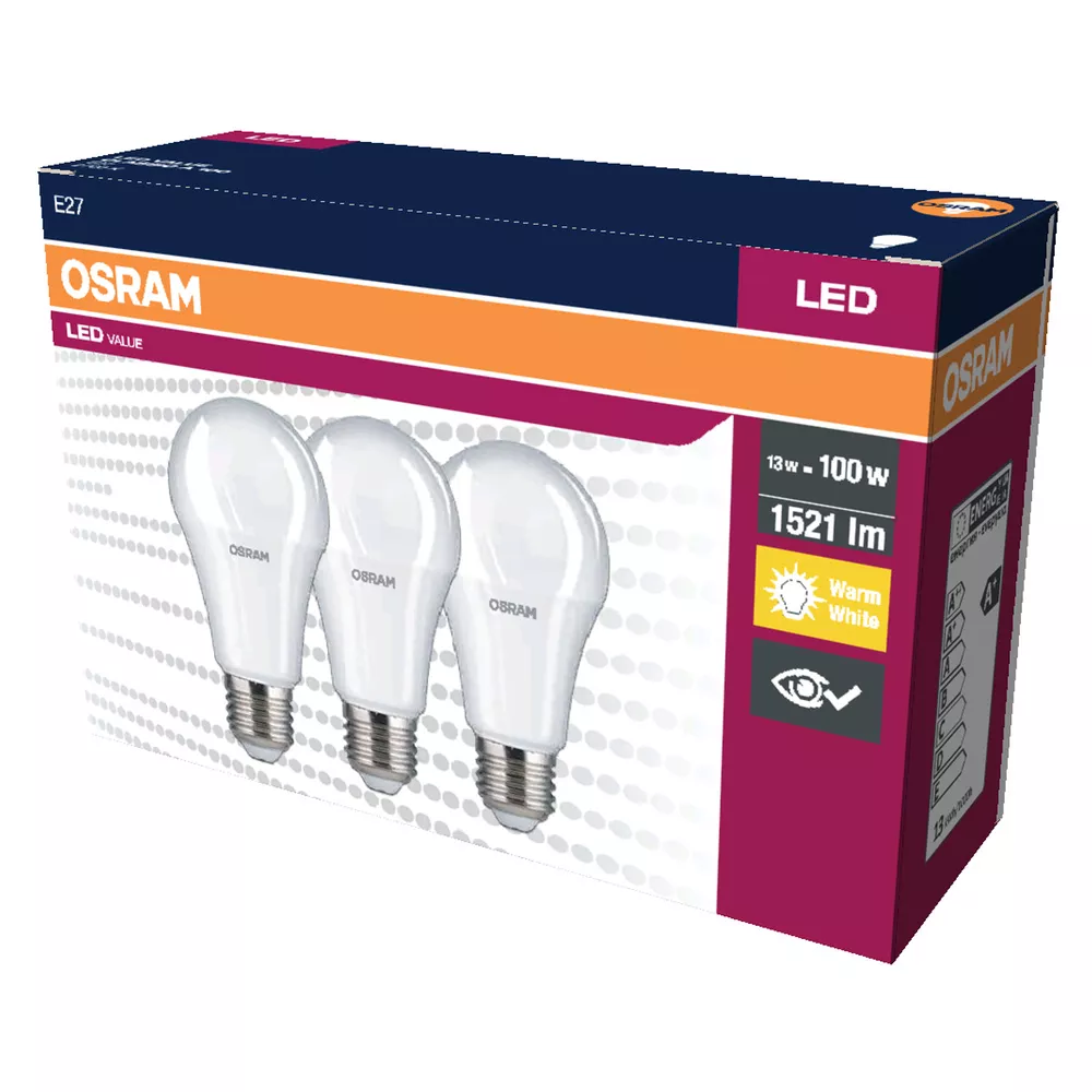 Lampy LED, klasyczny kształt żarówki. Cechy produktu: LED zamienniki tradycyjnych żarówek. Brak możliwości regulacji strumienia świetlnego. Dobre oddawanie barw (Ra ≥ 80) i stabilność braw przez cały czas eksploatacji lampy. Zalety produktu: Niższe zużycie energii w porównaniu do lamp żarowych lub halogenowych. Łatwy montaż zamiast zwykłych żarówek. Obszary zastosowań: Zastosowania domowe. Oświetlenie ogólne. Do użytku na zewnątrz tylko w odpowiednich oprawach zewnętrznych. Porady dotyczące bezpieczeństwa: Nie dotykaj lampy, jeśli jest stłuczona.. Nie wolno używać, jeśli zewnętrzne źródło światła jest uszkodzone..