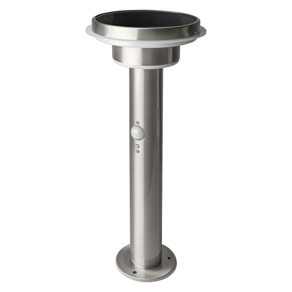 Oprawy oświetleniowe na baterie słoneczne z czujnikiem ruchu i światła, dwa okręgi. Cechy produktu: Oprawy oświetleniowe LED do użytku zewnętrznego zasilane energią słoneczną. Czujnik ruchu PIR i czujnik światła. Do wyboru 3 tryby pracy. Tryb pracy 1: światło ciągłe przy strumieniu świetlnym 200 lm (maks. 2,5 godziny przy pełnym naładowaniu). Tryb pracy 2: światło ciągłe przy strumieniu świetlnym 75 lm (maks. 8 godzin przy pełnym naładowaniu), przełącza się na 300 lm podczas ruchu (maks. 100 razy przy pełnym naładowaniu). Tryb pracy 3: światło wyłączone, przełącza się na strumień świetlny 400 lm podczas ruchu (maks. 100 razy przy pełnym naładowaniu). Ładowanie baterii poprzez panel słoneczny. Technologia baterii: litowo-jonowa. Obudowa ze stali nierdzewnej. Zalety produktu: Oświetlenie zgodne z zapotrzebowaniem i oszczędność energii zapewnia czujnik ruchu i światła. Łatwa regulacja w zależności od dostępnego światła dziennego i ruchu za pomocą przycisku. Wydajne energetycznie dzięki technologii LED. Łatwa i szybka instalacja. Obszary zastosowań: Zastosowania zewnętrzne (IP44). Miejsca, w których nie jest dostępne zasilanie sieciowe. Wyposażenie / Akcesoria: Kompletne akcesoria do montażu i podłączenia w zestawie. Porady dotyczące bezpieczeństwa: Jeśli komora baterii (jeśli dotyczy) nie zamyka się bezpiecznie, zaprzestań używania produktu i trzymaj go z dala od dzieci. Jeśli podejrzewasz, że baterie mogły zostać połknięte lub umieszczone w jakiejkolwiek części ciała, natychmiast zwróć się o pomoc lekarską.. Prosimy unikać: Maksymalna temperatura otoczenia: +35 °C. Wymiana baterii na nieprawidłowy typ, który może obejść zabezpieczenie (na przykład w przypadku niektórych typów baterii litowych). Wysokość podczas pracy: 2000 m. Utylizacja baterii w ogniu lub gorącym piekarniku, lub mechaniczne zgniatanie lub cięcie baterii, co może spowodować wybuch..