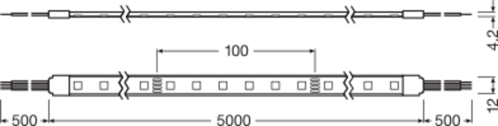 Paski LED RGB o stopniu ochrony IP65, o strumieniu świetlnym 500 lm/m, do ogólnych zastosowań. Cechy produktu: Elastyczna i łamana taśma LED z liniowymi, wieloukładowymi LED RGB. Najmniejsza jednostka podziału : 100 mm. Trwałość (L70/B50): do 40 000 h przy Tc maks .: 75°C. Stopień ochrony: IP65. Ochrona przed mgłą zawierającą sól. Wysoka odporność na promieniowanie UV. Regulacja strumienia świetlnego poprzez modulację szerokości impulsu (PWM). Zalety produktu: Szeroki zakres możliwości projektowych dzięki długim i elastycznym paskom LED RGB. Równomierna zmiana kolorów. Łatwa instalacja, podłączenie nie wymaga zastosowania narzędzi. Łatwy montaż na wielu delikatnych powierzchniach dzięki taśmie samoprzylepnej. Maksymalna uniwersalność dzięki dużemu asortymentowi wyposażenia dodatkowego. Łatwe podłączenie dzięki zintegrowanym przewodom po obu stronach. Obszary zastosowań: Przeznaczone do zastosowań wewnętrznych i zewnętrznych (IP64). Oświetlenie akcentujące elewację. Oświetlenie efektowe w architekturze. Efekty dynamiczne w miejscach publicznych. Oświetlenie faset. Oświetlenie pod szafkami. Hotele i biura. Pomieszczenia mieszkalne. Porady dotyczące bezpieczeństwa: Wszystkie podłączenia elektryczne muszą być wykonane przez osobę wykwalifikowaną..