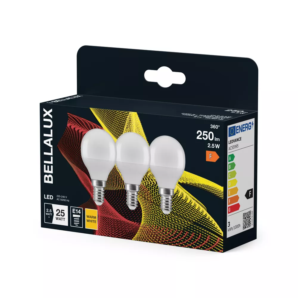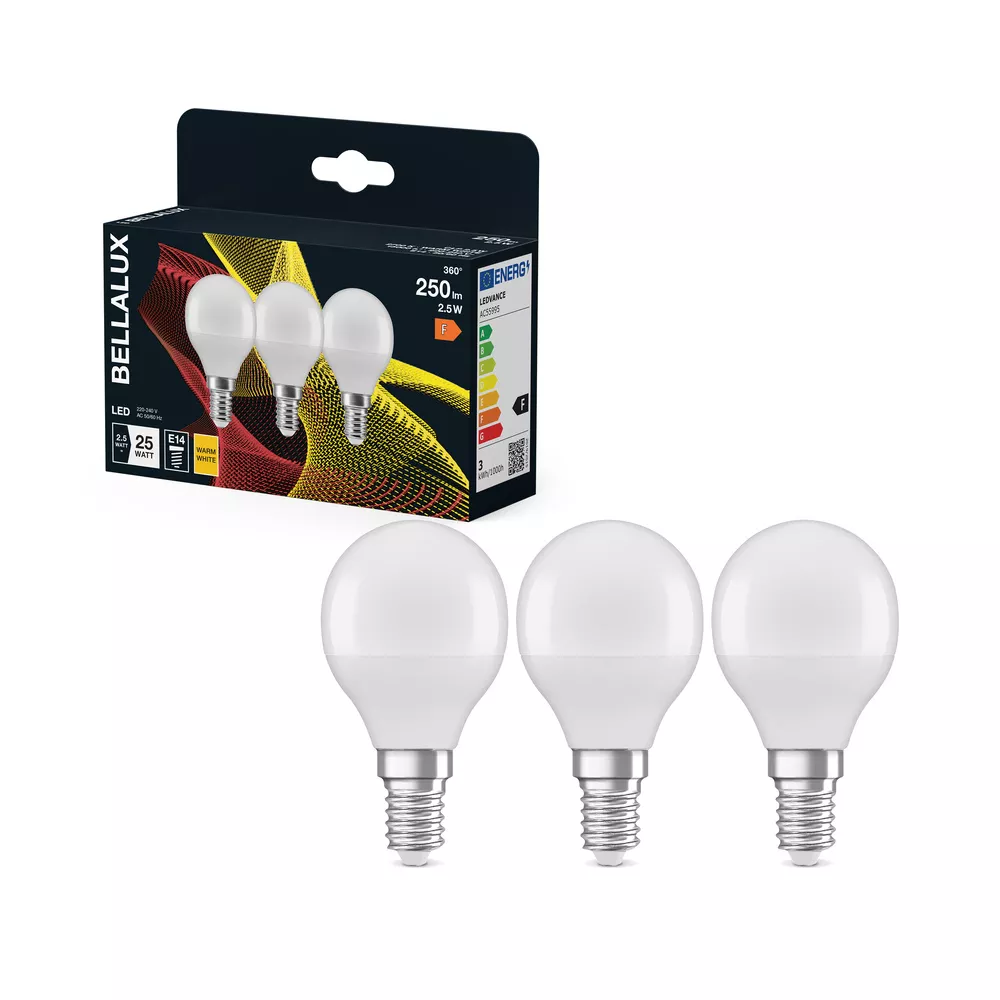 Lampy LED w kształcie klasycznej żarówki kulistej. Cechy produktu: Lampy LED dla napięcia sieciowego. Nieprzystosowane do pracy z regulatorami. Lampy niezawierające rtęci. Zalety produktu: Niskie obciążenie cieplne (w porównaniu ze standardowym produktem referencyjnym). Niższe zużycie energii w porównaniu do lamp żarowych lub halogenowych. Odporność na wstrząsy i drgania dzięki technologii LED. Brak promieniowania UV i podczerwonego w wiązce światła. Natychmiast 100 % światła, bez czasu nagrzewania. Bezpośrednio zastępuje zwykłe żarówki. Obszary zastosowań: Oświetlenie ogólne. Zastosowania domowe. Eksploatacja na zewnątrz wyłącznie w oprawach zewnętrznych (co najmniej IP65). Porady dotyczące bezpieczeństwa: Nie dotykaj lampy, jeśli jest stłuczona.. Nie wolno używać, jeśli zewnętrzne źródło światła jest uszkodzone..