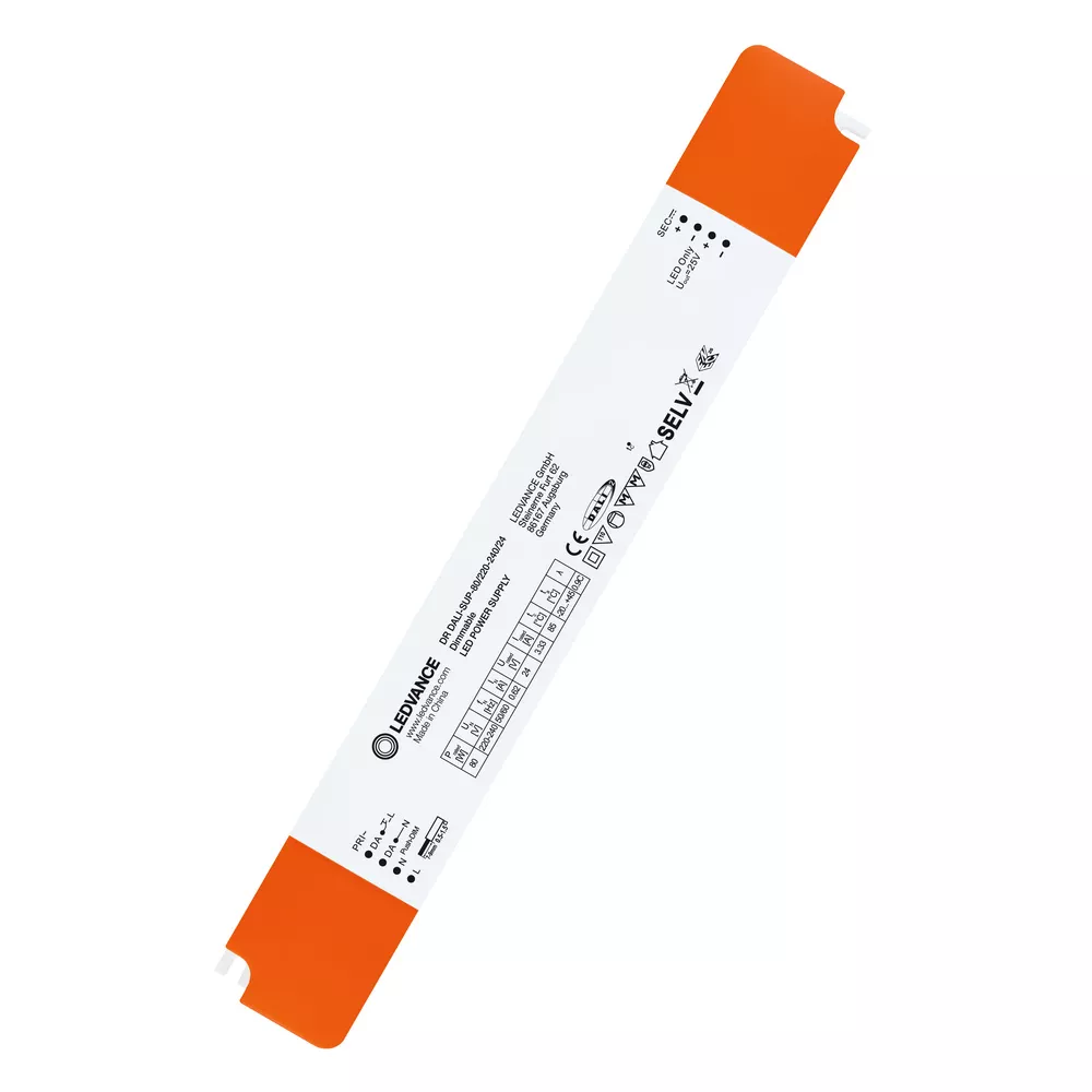 Stałonapięciowy zasilacz LED z interfejsem DALI. Cechy produktu: Jednokanałowy sterownik LED, sterowanie DALI-2. Obudowa z zaciskiem do przewodów, do niezależnego montażu. Praca z bezpiecznym, bardzo niskim napięciem (SELV): < 60 V. Stopień ochrony: IP20. Zalety produktu: Szybki i wygodny montaż bez użycia narzędzi dzięki zastosowaniu zacisków do przewodów. 5-letnia gwarancja. Niewielkie tętnienie światła zapewnia wysoką jakość światła oraz dobry komfort wizualny. Aplikacja Push DIM umożliwia łatwe sterowanie. Optymalne dopasowanie do elastycznych pasków LED 24 V. Obszary zastosowań: Oświetlenie wnęk, nawet w miejscach o ograniczonej przestrzeni. Wnętrza hoteli, sklepów, szpitali, mieszkań. Muzea, galerie sztuki. Linie świetlne w biurach indywidualnych lub wielkopowierzchniowych. Nadaje się do użytku w systemach oświetlenia awaryjnego (możliwy DC).