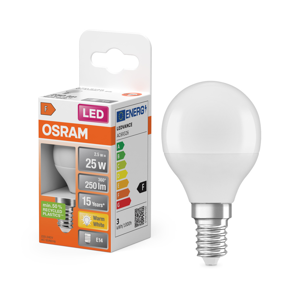 Lampy LED z tworzywa sztucznego pochodzącego z recyklingu. Cechy produktu: LED zamienniki tradycyjnych żarówek. Lampy niezawierające rtęci. Zalety produktu: Niższe zużycie energii w porównaniu do lamp żarowych lub halogenowych. Prosty w użyciu zamiennik żarówek klasycznych dzięki kompaktowej konstrukcji. Natychmiast 100 % światła, bez czasu nagrzewania. Obszary zastosowań: Zastosowania domowe. Oświetlenie ogólne. Nastrojowe oświetlenie akcentujące w całym domu. Do użytku na zewnątrz tylko w odpowiednich oprawach zewnętrznych. Porady dotyczące bezpieczeństwa: Nie dotykaj lampy, jeśli jest stłuczona.. Nie wolno używać, jeśli zewnętrzne źródło światła jest uszkodzone..