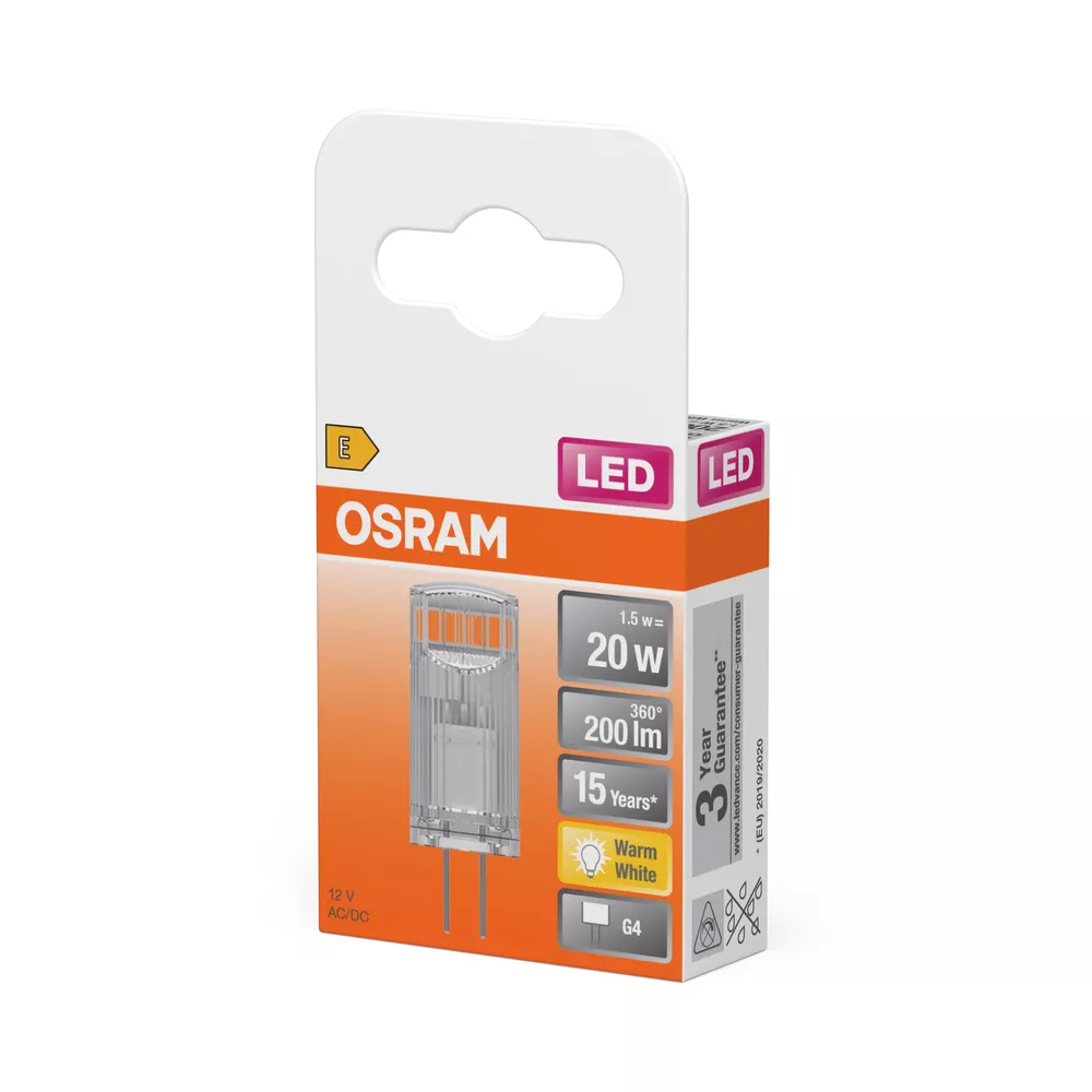 Niskonapięciowe lampy LED 12 V z trzonkiem kołkowym. Cechy produktu: Zgodność z wieloma konwencjonalnymi i elektronicznymi zasilaczami (patrz również compatibility list). Zamiennik LED dla niskonapięciowych żarówek halogenowych. Trzonek: G4, GY6.35. Zalety produktu: Praca alternatywnie z zasilaniem prądem stałym lub przemiennym. Równomierny rozsył światła we wszystkich kierunkach. Idealne do zastosowania dekoracyjnego oraz do eksploatacji bez oprawy. Długa trwałość do 15 000 godzin. 3-letnia gwarancja. Niższe zużycie energii w porównaniu do lamp żarowych lub halogenowych. Obszary zastosowań: Zastosowania dekoracyjne. Nastrojowe oświetlenie akcentujące w całym domu. Do użytku na zewnątrz tylko w odpowiednich oprawach zewnętrznych. Porady dotyczące bezpieczeństwa: Nie dotykaj lampy, jeśli jest stłuczona.. Nie wolno używać, jeśli zewnętrzne źródło światła jest uszkodzone.. Aby zapewnić pełną wydajność oświetlenia i trwałość produktu, zalecane jest demontaż szyby lub osłony oprawy oświetleniowej..