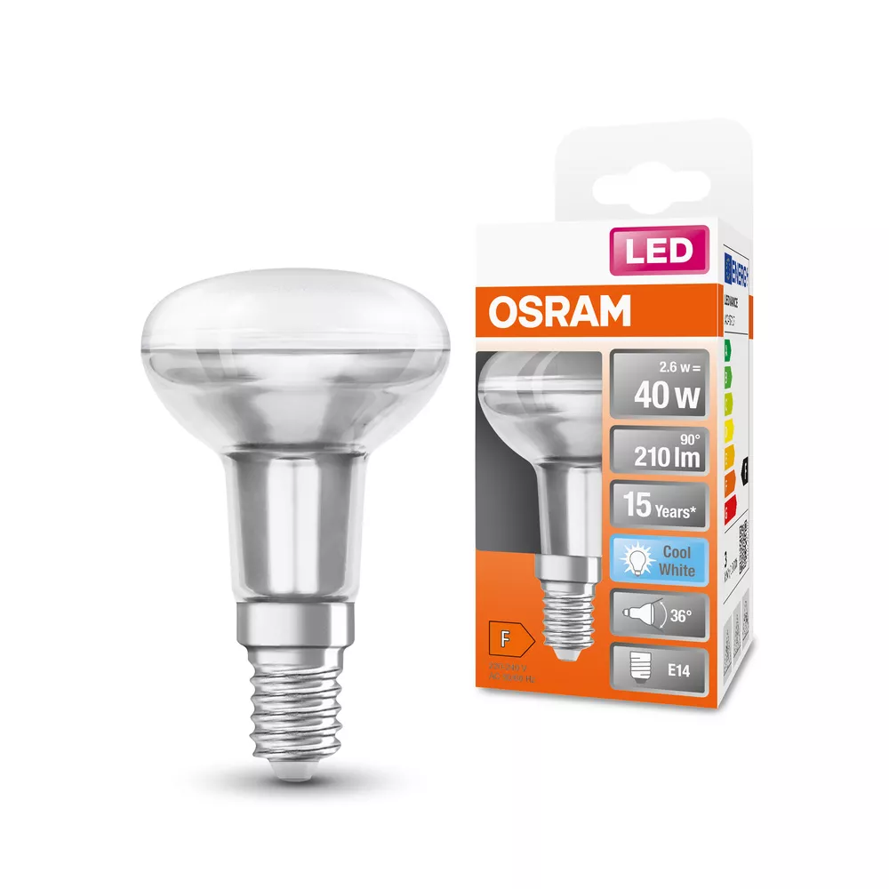 Reflektorowe lampy LED R50. Cechy produktu: Profesjonalne LED zamienniki żarówek halogenowych. Lampy niezawierające rtęci. Zalety produktu: Długa trwałość do 15 000 godzin. Niższe zużycie energii w porównaniu do lamp żarowych lub halogenowych. Prosty w użyciu zamiennik żarówek halogenowych dzięki kompaktowej konstrukcji. Natychmiast 100 % światła, bez czasu nagrzewania. Obszary zastosowań: Szafki do ekspozycji i witryny sklepowe. Muzea, galerie sztuki. Pomieszczenia wystawowe. Hotele. Pomieszczenia mieszkalne. Jako światło wpuszczane do oznaczania przejść, drzwi, schodów itp.. Do użytku na zewnątrz tylko w odpowiednich oprawach zewnętrznych. Porady dotyczące bezpieczeństwa: Nie dotykaj lampy, jeśli jest stłuczona.. Nie wolno używać, jeśli zewnętrzne źródło światła jest uszkodzone..