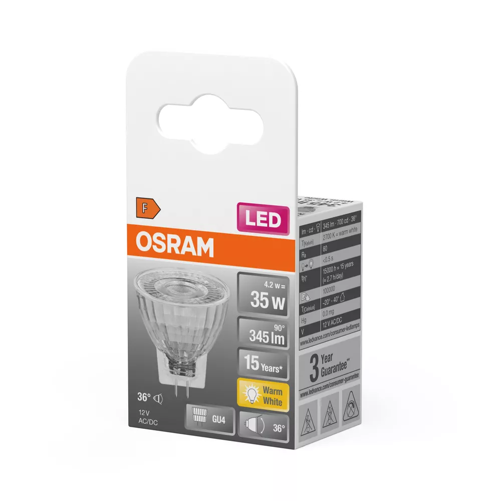 Reflektorowe lampy LED. Cechy produktu: Profesjonalne LED zamienniki żarówek halogenowych MR11. Lampy niezawierające rtęci. Zalety produktu: Długa trwałość do 15 000 godzin. Niższe zużycie energii w porównaniu do lamp żarowych lub halogenowych. Łatwa wymiana lampy dzięki kompaktowej konstrukcji i trzonkowi GU4. Obszary zastosowań: Szafki do ekspozycji i witryny sklepowe. Muzea, galerie sztuki. Pomieszczenia wystawowe. Pomieszczenia mieszkalne. Jako światło wpuszczane do oznaczania przejść, drzwi, schodów itp.. Do użytku na zewnątrz tylko w odpowiednich oprawach zewnętrznych. Porady dotyczące bezpieczeństwa: Nie dotykaj lampy, jeśli jest stłuczona.. Nie wolno używać, jeśli zewnętrzne źródło światła jest uszkodzone..