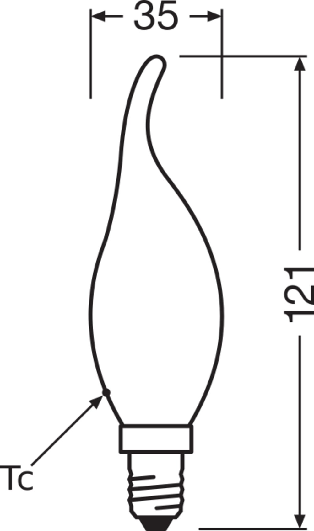 Lampy LED , klasyczny kształt mini-świecy z zakrzywioną końcówką. Cechy produktu: Profesjonalne lampy dla napięcia sieciowego. Brak możliwości regulacji strumienia świetlnego. Kąt wiązki światła: do 300°. Lampa wykonana ze szkła. Dobra jakość światła, wskaźnik oddawania barw R<sub>a</sub>: ≥ 80; stała chromatyczność. Zalety produktu: Lampy wyposażone w innowacyjną technologię „włókien” LED. Niższe zużycie energii w porównaniu do lamp żarowych lub halogenowych. Brak promieniowania UV i podczerwonego w wiązce światła. Natychmiast 100 % światła, bez czasu nagrzewania. Łatwy montaż zamiast zwykłych żarówek. Niskie obciążenie cieplne (w porównaniu ze standardowym produktem referencyjnym). Obszary zastosowań: Doskonałe rozwiązanie do instalacji dekoracyjnych. Zastosowania domowe. Oświetlenie ogólne. Do użytku na zewnątrz tylko w odpowiednich oprawach zewnętrznych. Porady dotyczące bezpieczeństwa: Nie dotykaj lampy, jeśli jest stłuczona.. Nie wolno używać, jeśli zewnętrzne źródło światła jest uszkodzone..