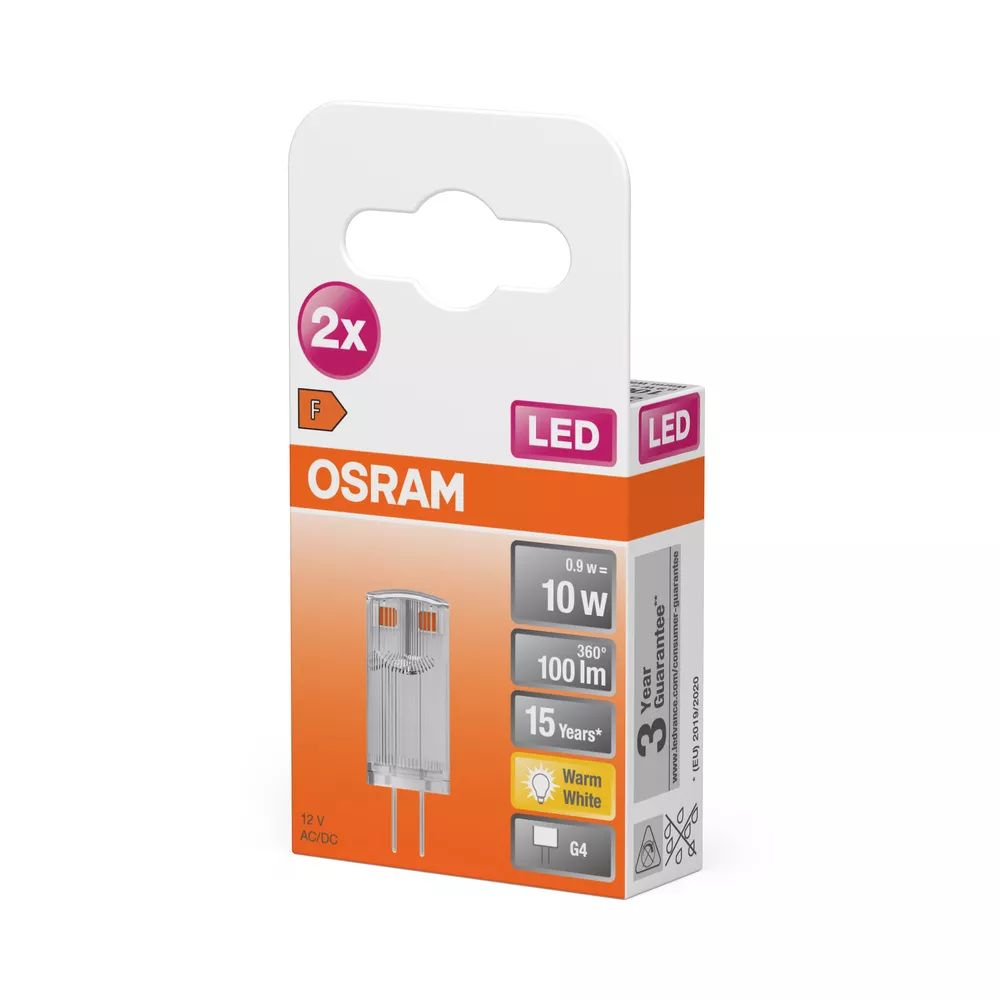 Niskonapięciowe lampy LED 12 V z trzonkiem kołkowym. Cechy produktu: Zgodność z wieloma konwencjonalnymi i elektronicznymi zasilaczami (patrz również compatibility list). Zamiennik LED dla niskonapięciowych żarówek halogenowych. Trzonek: G4, GY6.35. Zalety produktu: Praca alternatywnie z zasilaniem prądem stałym lub przemiennym. Równomierny rozsył światła we wszystkich kierunkach. Idealne do zastosowania dekoracyjnego oraz do eksploatacji bez oprawy. Długa trwałość do 15 000 godzin. 3-letnia gwarancja. Niższe zużycie energii w porównaniu do lamp żarowych lub halogenowych. Obszary zastosowań: Zastosowania dekoracyjne. Nastrojowe oświetlenie akcentujące w całym domu. Do użytku na zewnątrz tylko w odpowiednich oprawach zewnętrznych. Porady dotyczące bezpieczeństwa: Nie dotykaj lampy, jeśli jest stłuczona.. Nie wolno używać, jeśli zewnętrzne źródło światła jest uszkodzone.. Aby zapewnić pełną wydajność oświetlenia i trwałość produktu, zalecane jest demontaż szyby lub osłony oprawy oświetleniowej..