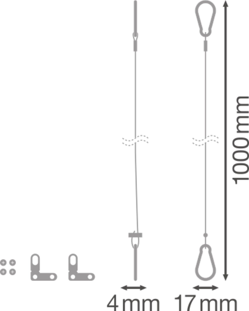 Zestawy bezpieczeństwa do opraw panelowych. Cechy produktu: Przewody i wsporniki wykonane ze stali. Zalety produktu: Linki zabezpieczające i zaciski do paneli LEDVANCE.