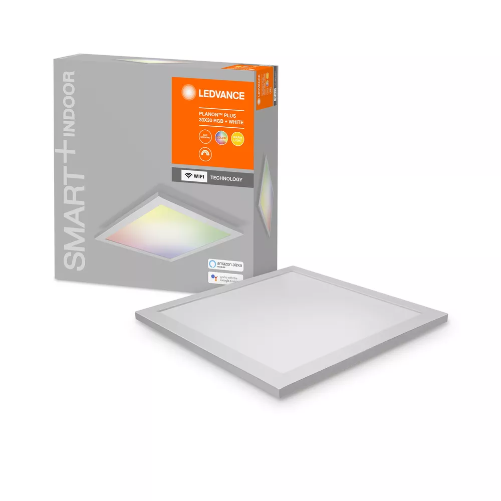 Oprawy panelowe z technologią WiFi. Cechy produktu: Możliwość sterowania za pomocą aplikacji LEDVANCE SMART+ (z systemem Android co najmniej 8.0 lub iOS 14.0). Możliwość sterowania za pomocą głosu: Asystent Google lub Amazon Alexa. Sterowanie kolorami RGB. Ściemnialne. Protokół sieciowy: WiFi. Zalety produktu: Łatwa i szybka instalacja. Obszary zastosowań: Zastosowania wewnętrzne. Kuchnie, salony, pokoje dziecięce i pokoje do pracy. Wyposażenie / Akcesoria: Wspornik montażowy w zestawie. Śruby i kołki montażowe dostarczone w zestawie. Sterowanie za pomocą aplikacji lub głosu wymaga kompatybilnego systemu sterowania domem inteligentnym. Do sterowania za pomocą aplikacji LEDVANCE SMART+ wymagany jest smartfon lub tablet (z systemem Android co najmniej 8.0 lub iOS 14.0). Porady dotyczące bezpieczeństwa: Wszystkie podłączenia elektryczne muszą być wykonane przez osobę wykwalifikowaną.. Uwaga, ryzyko porażenia prądem.. Sprawdź przydatność ściany i sufitu. Jeśli nie jesteś pewien, zasięgnij profesjonalnej porady..