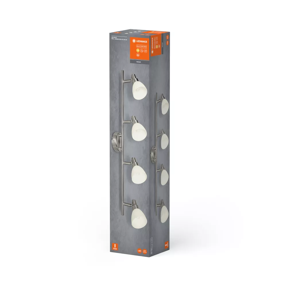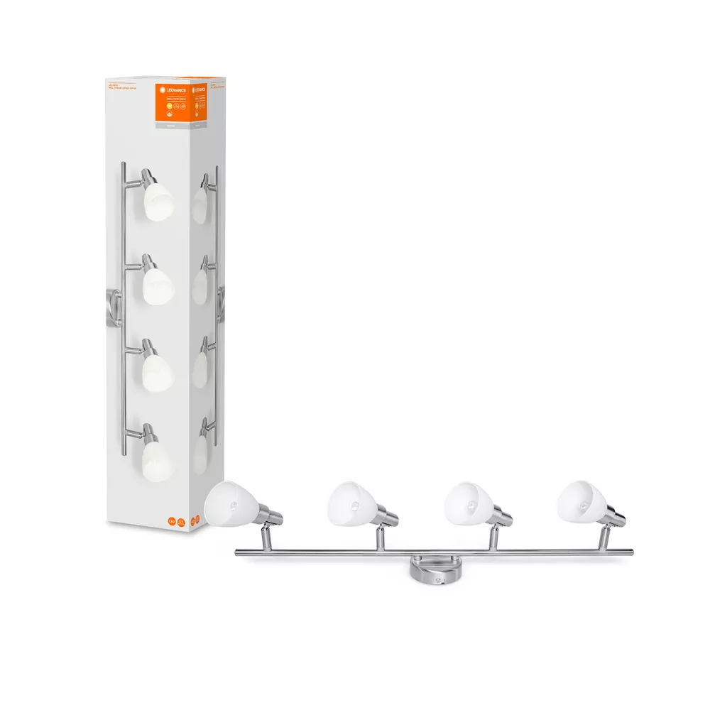 Oprawy sufitowe z elastycznymi reflektorami G9. Cechy produktu: Rodzina opraw obejmuje pięć wersji z maksymalnie 6 głowicami oświetlenia punktowego. Powierzchnia obudowy wykonana ze szczotkowanego niklu. Klosz wykonany z matowego szkła. Regulowana oprawa. Zalety produktu: Aż do 90 % oszczędność energii w porównaniu z punktowymi oprawami halogenowymi. Ponadczasowa stylistyka. Uniwersalne rozwiązanie dzięki wymiennym lampom LED. Łatwy montaż. Obszary zastosowań: Zastosowania wewnętrzne. Korytarze, wejścia, klatki schodowe, pokoje dzienne, sutereny. Kuchnie, przestrzenie robocze. Montaż powierzchniowy na suficie i ścianach. Wyposażenie / Akcesoria: Wyposażony w LAMPĘ LED OSRAM EAN 4058075432307. Kompletne akcesoria do montażu i podłączenia w zestawie. Porady dotyczące bezpieczeństwa: Wszystkie podłączenia elektryczne muszą być wykonane przez osobę wykwalifikowaną.. Uwaga, ryzyko porażenia prądem.. Produkt w klasie ochrony I. Wszystkie przewodzące prąd, metalowe części obudowy, które mogą absorbować napięcie podczas pracy lub podczas konserwacji w przypadku awarii, muszą być stale PODŁĄCZONE do przewodu uziemiającego..