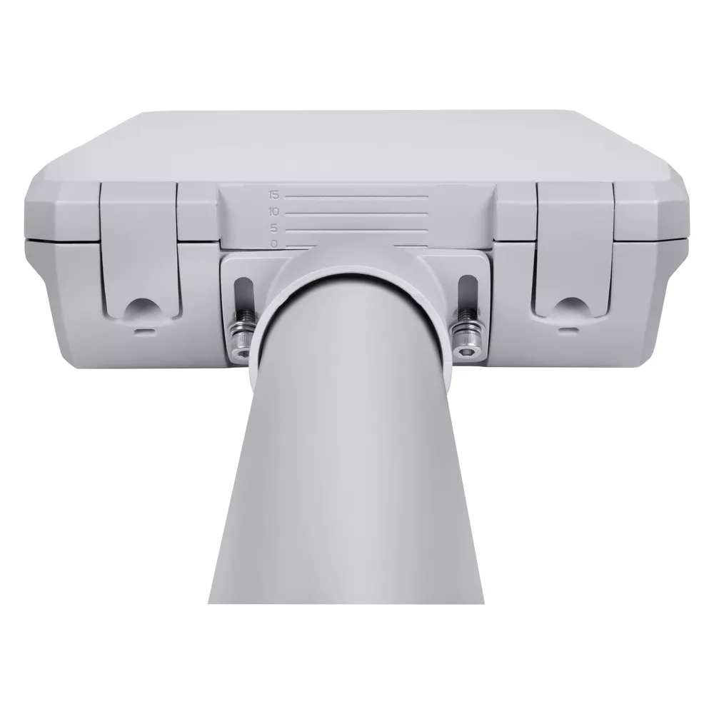 Rozsył światła zoptymalizowany dla szerszych dróg i oświetlenia zewnętrznego. Cechy produktu: Optymalny rozsył strumienia świetlnego. Bardzo długa trwałość (L90/B10): do 100 000 godzin (przy 25 °C). W zestawie czop na słupy o średnicy 48-60 mm. Dodatkowa redukcja do 42 mm i adapter do 76 mm dostępne osobno. Oprawa przystosowana do montażu bocznego lub na szczycie słupa. Regulacja kąta nachylenia +/- 15° bez otwierania obudowy. Wysoka skuteczność świetlna: do 151 lm/W. Zakres temperatury pracy: -40...50 °C. Wysoka ochrona przed przepięciami: do 10 kV (L/N-GND). Złączka push fit zapewnia szybkie i łatwe podłączenie elektryczne. Klasa ochronności: II. Zalety produktu: Trwała konstrukcja i komponenty najwyższej jakości zapewniają długą trwałość. Szybkie i łatwe okablowanie oprawy dzięki otwieraniu obudowy bez użycia narzędzi i zaciskom przyciskowym. Wysoka jednorodność światła. Dostępne 3 barwy światła, doskonale nadające się do oświetlenia bardzo zróżnicowanego otoczenia. Brak górnego współczynnika rozsyłu światła (ULOR 0%) w przypadku zamontowania pod kątem 0°. Automatyczne wyłączanie zasilania podczas otwierania obudowy. 5-letnia gwarancja. Obszary zastosowań: Zastosowania zewnętrzne (IP66). Drogi klasy M, C i P wg. Wymagań PN- EN 13201. Parking. Strefy publiczne. Przemysł. Wyposażenie / Akcesoria: Zaczep do złączek 42 i 76 mm dostępny osobno.