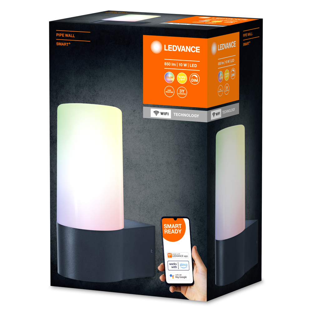 Oprawa z technologią WiFi. Cechy produktu: Możliwość sterowania za pomocą aplikacji LEDVANCE SMART+ (z systemem Android co najmniej 8.0 lub iOS 14.0). Możliwość sterowania za pomocą głosu: Asystent Google lub Amazon Alexa. Sterowanie kolorami RGB. Ściemnialne. Temperatura barwowa: 3000 K (Warm White - ciepłobiała). Protokół sieciowy: WiFi. Stopień ochrony: IP44. Zalety produktu: Łatwa i szybka instalacja. Barwne oświetlenie ogrodowe i inteligentne opcje sterowania. Obszary zastosowań: Oświetlenie ogólne. Ogrody. Patia, balkony. Wyposażenie / Akcesoria: Śruby i kołki montażowe dostarczone w zestawie. Sterowanie za pomocą aplikacji lub głosu wymaga kompatybilnego systemu sterowania domem inteligentnym. Do sterowania za pomocą aplikacji LEDVANCE SMART+ wymagany jest smartfon lub tablet (z systemem Android co najmniej 8.0 lub iOS 14.0). Porady dotyczące bezpieczeństwa: Wszystkie podłączenia elektryczne muszą być wykonane przez osobę wykwalifikowaną.. Uwaga, ryzyko porażenia prądem.. Produkt w klasie ochrony I. Wszystkie przewodzące prąd, metalowe części obudowy, które mogą absorbować napięcie podczas pracy lub podczas konserwacji w przypadku awarii, muszą być stale PODŁĄCZONE do przewodu uziemiającego.. Sprawdź przydatność ściany i sufitu. Jeśli nie jesteś pewien, zasięgnij profesjonalnej porady..
